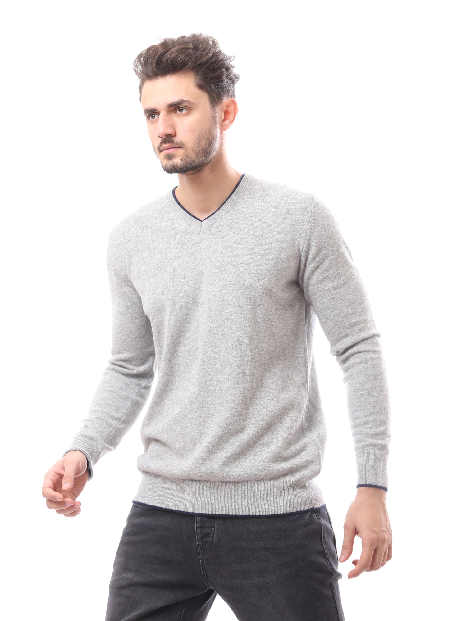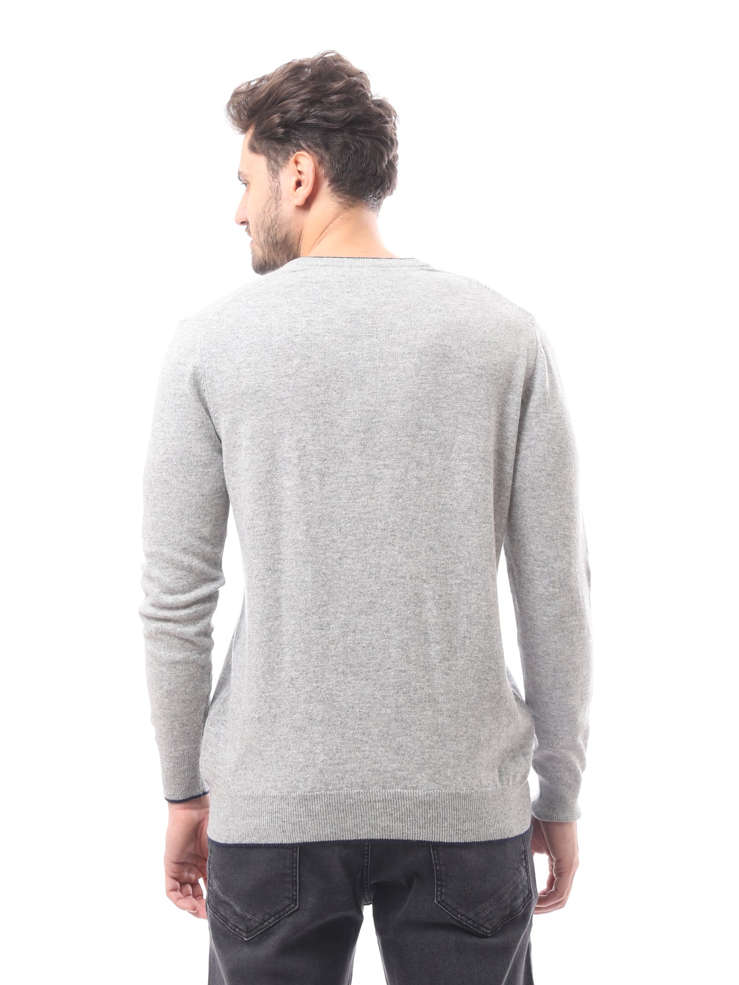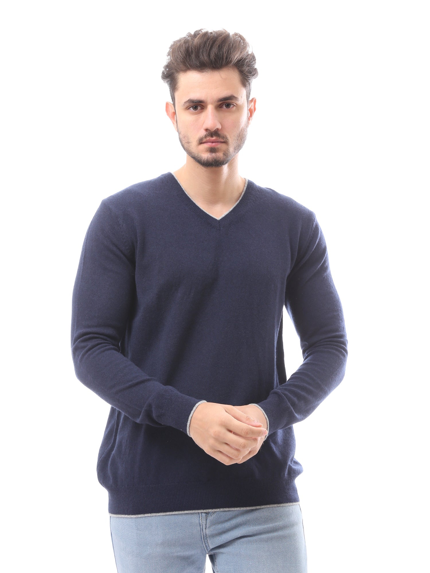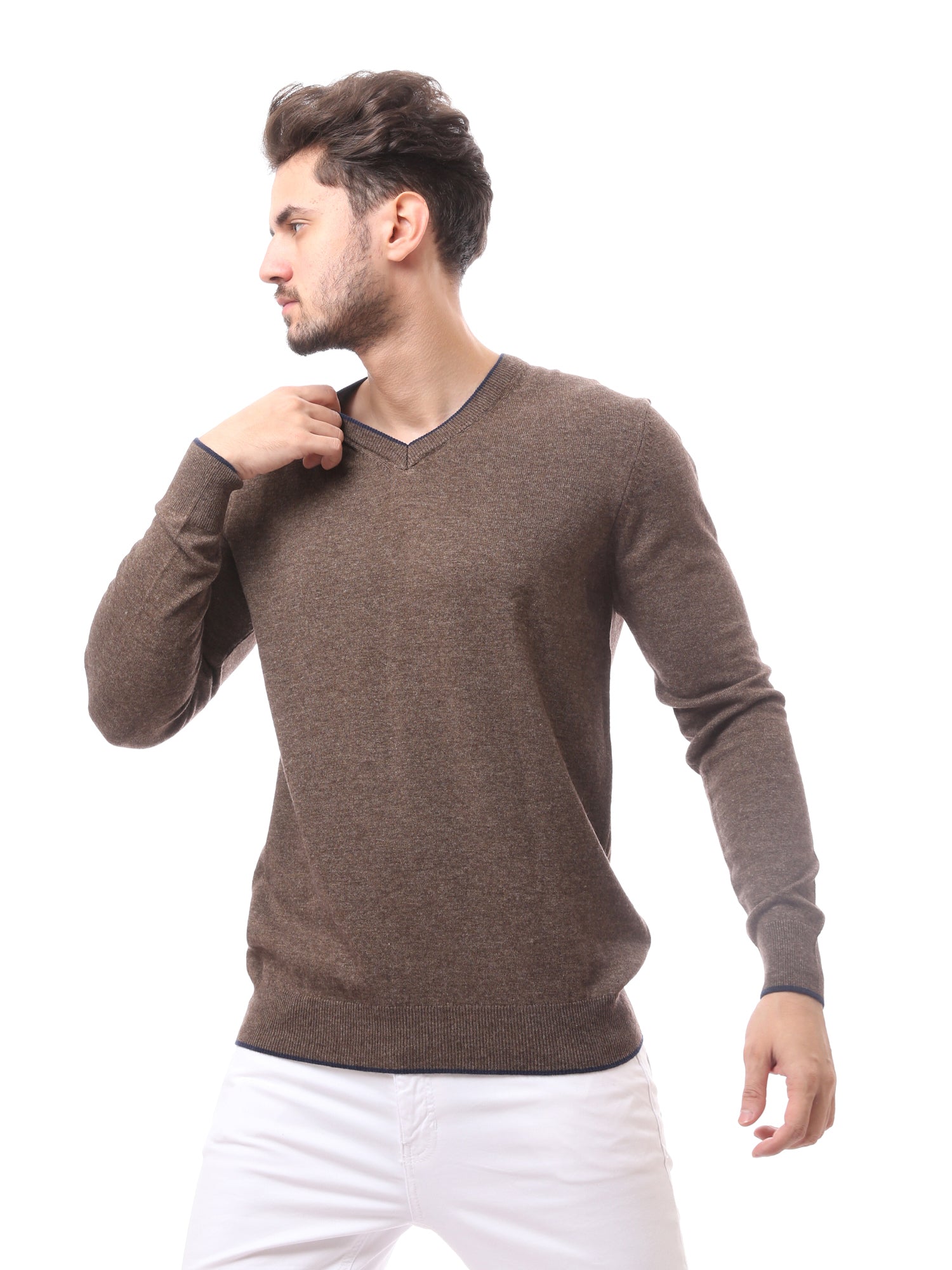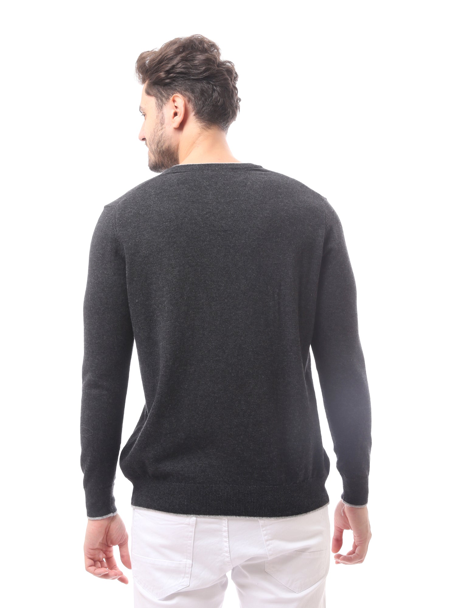 كنزة رجالية بياقة V صوف ناعم بألوان أنيقة - PUL24WTWO27425TM1