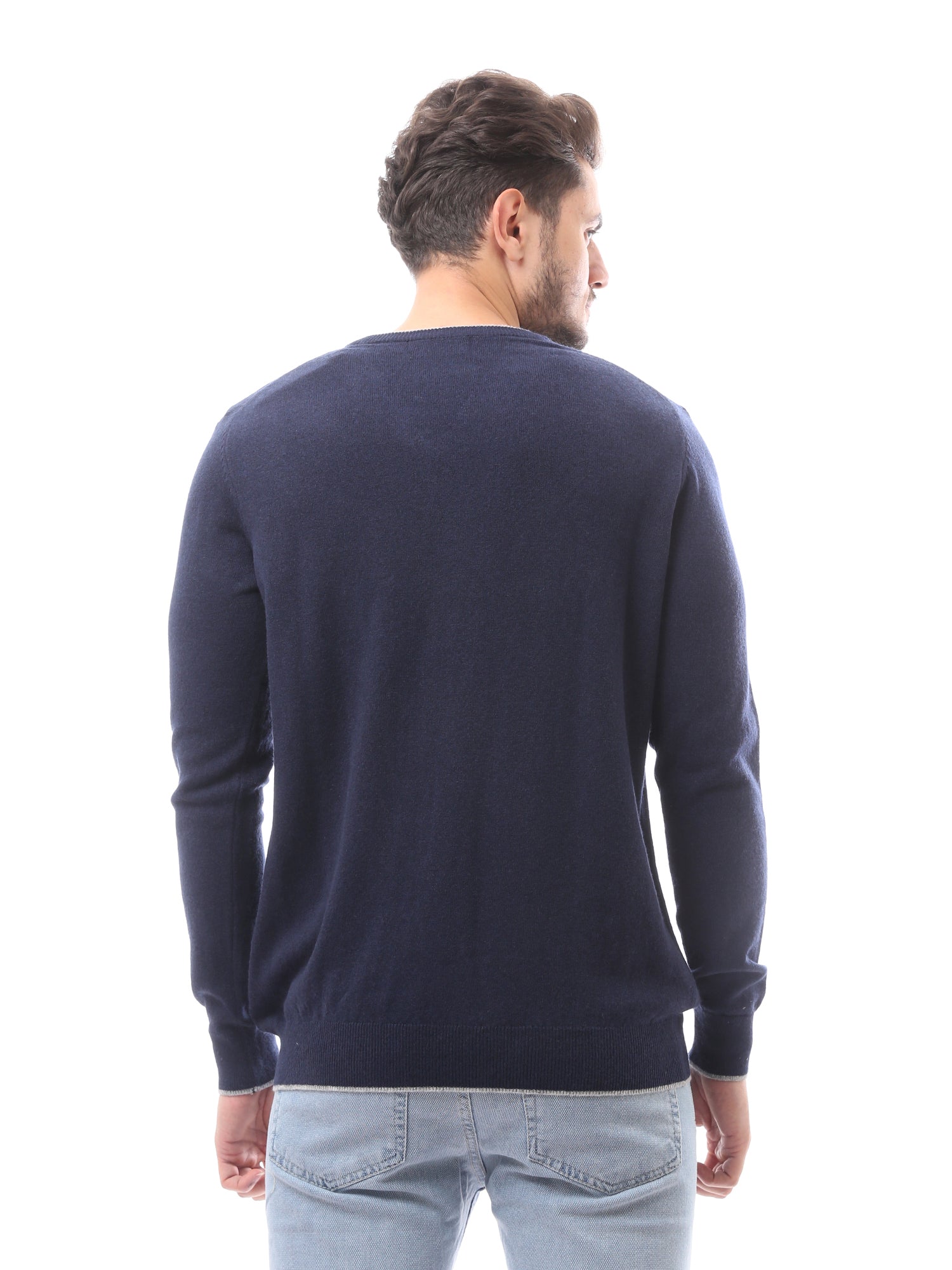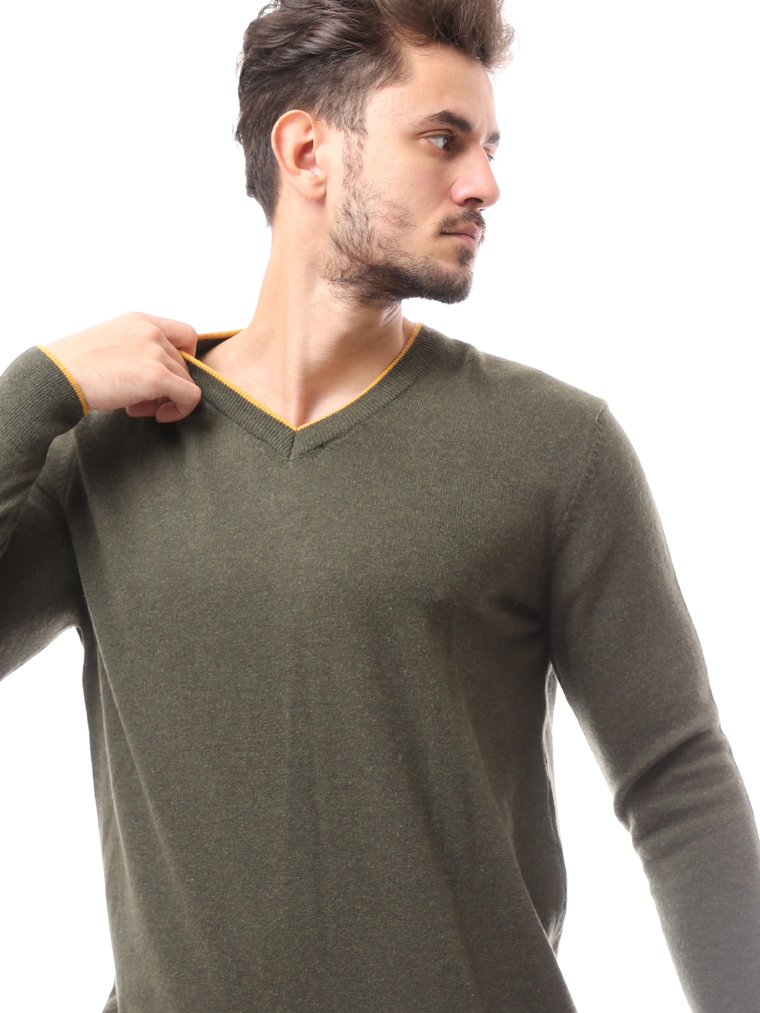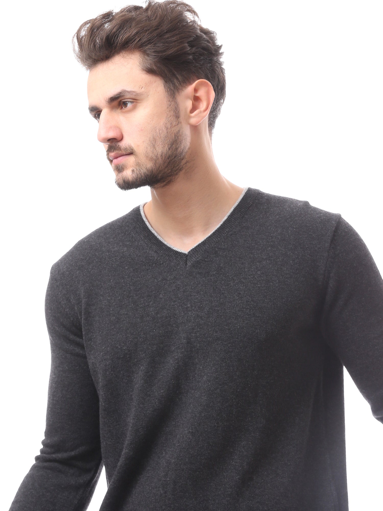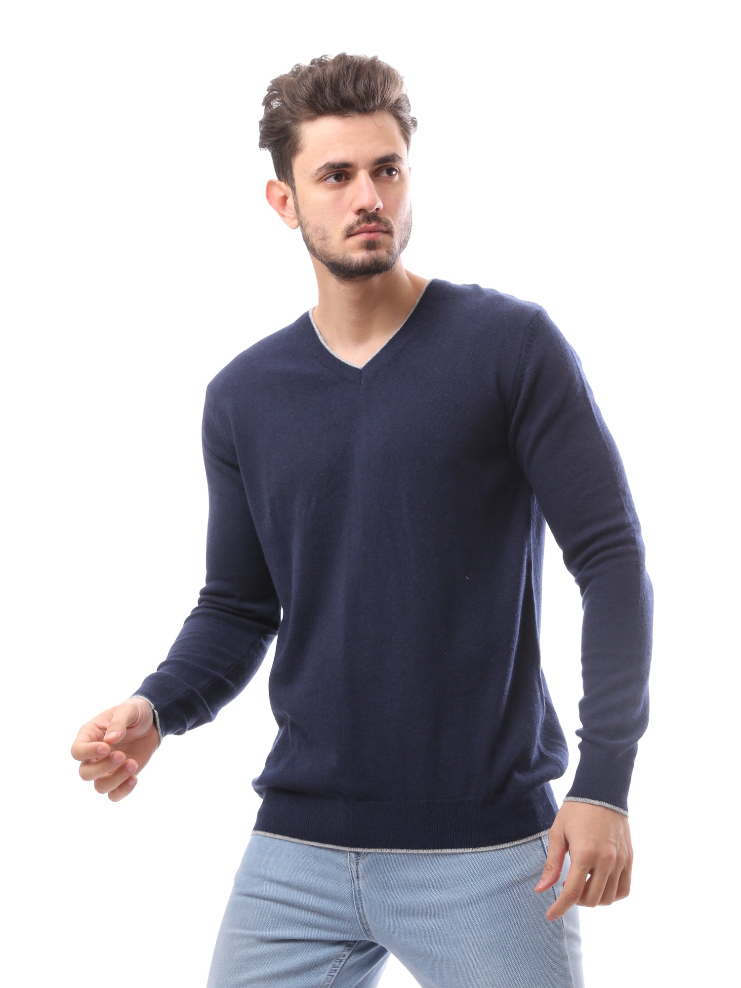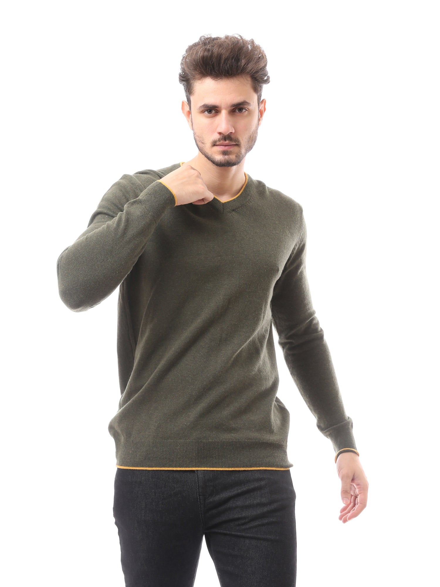 كنزة رجالية بياقة V صوف ناعم بألوان أنيقة - PUL24WTWO27425TM1