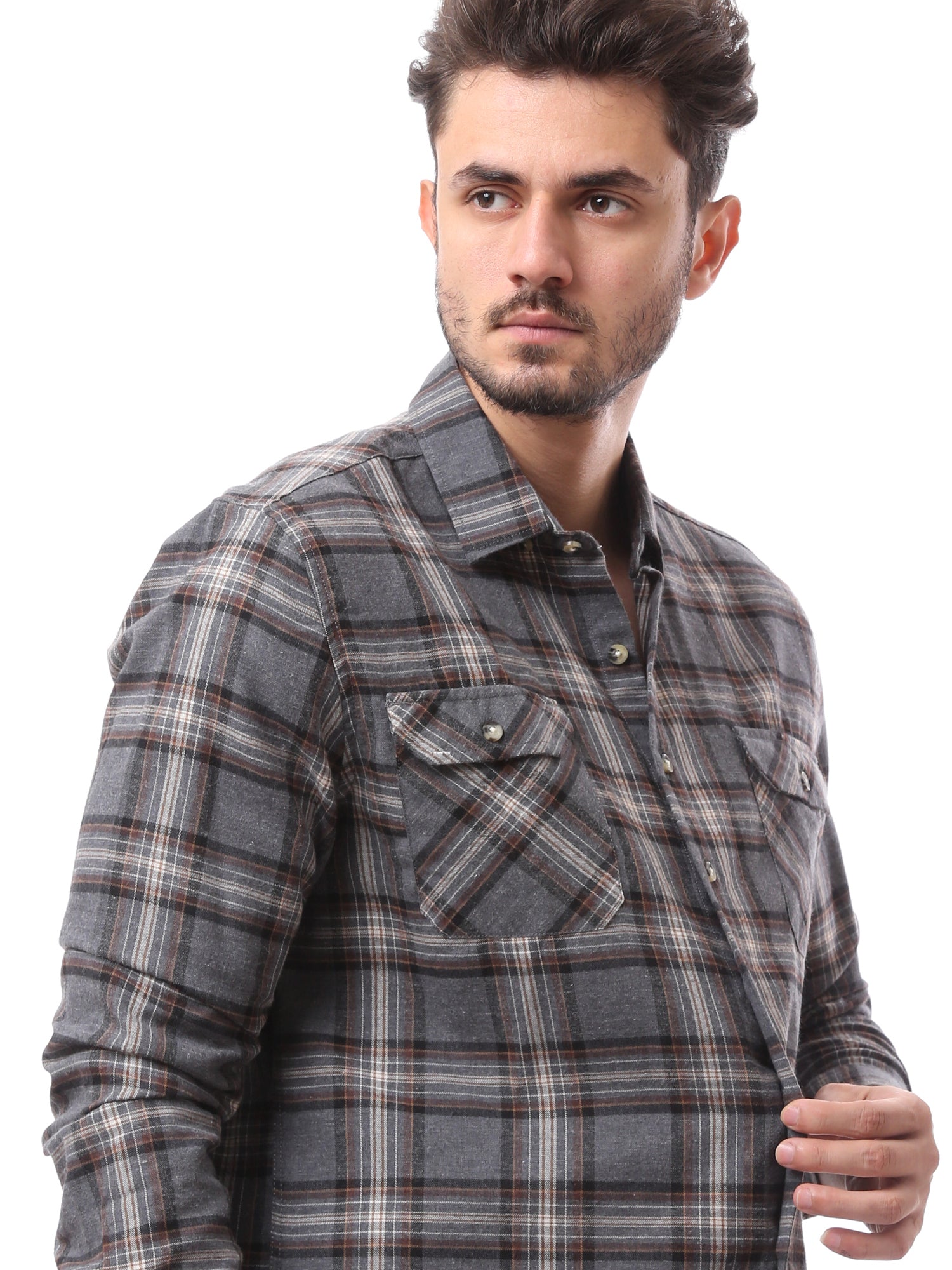 قميص رجالي كاروهات بأكمام طويلة -FSH23GCCR19777TM1