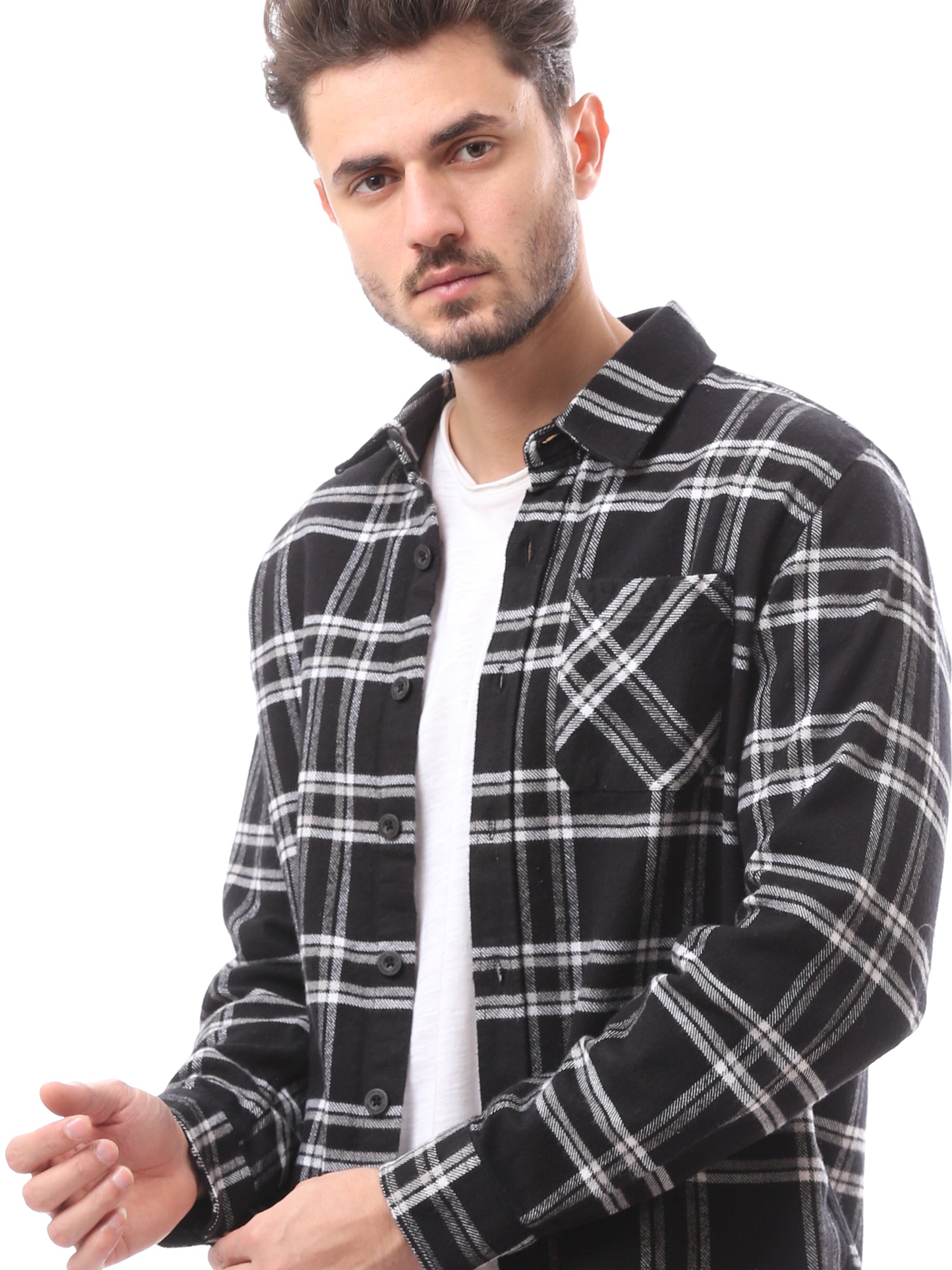 قميص رجالي كاروهات بتصميم عصري وأنيق يناسب الإطلالات اليومية أو الكاجوال. يأتي بأكمام طويلة مع زر للإغلاق، بالإضافة إلى جيب صدر عملي مع تفاصيل مميزة. مصمم من خامة ناعمة توفر راحة طوال اليوم، مع قصّة عصرية تتناسب مع الجينز أو البناطيل القماشية، مما يجعله خياراً مثالياً لإطلالة أنيقة .