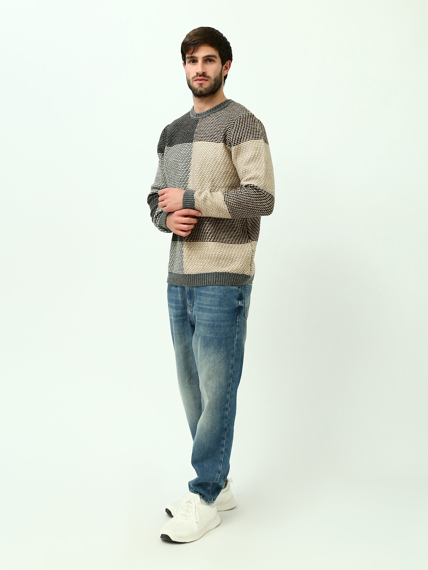 بلوفر رجالي بنمط مربعات وألوان متعددة - PUL24WPCR27650TM1