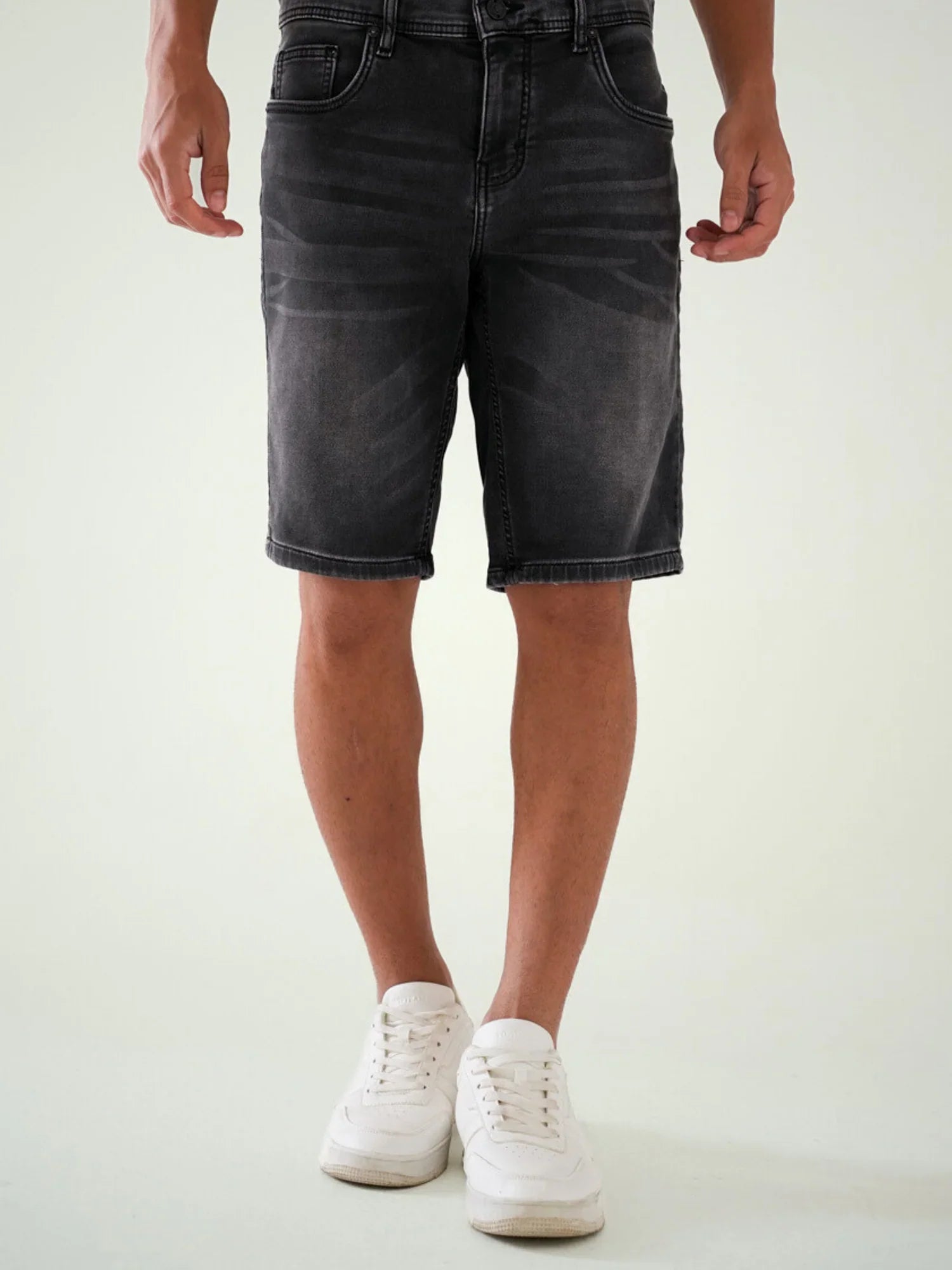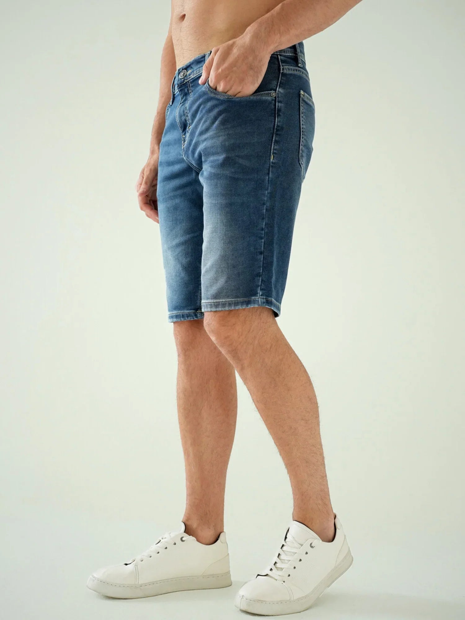 شورت جينز رجالي بتصميم كلاسيكي عملي، مناسب للإطلالات اليومية والكاجوال. يأتي بألوان سهلة التنسيق، مع قَصّة مريحة وطول عملي فوق الركبة يمنح حرية حركة مثالية.