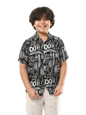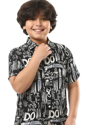 أضف لمسة من الأناقة إلى إطلالة أطفالك مع هذا القميص المزخرف بتصميم عصري وجريء. يتميز بتصميم مزخرف وطباعة مميزة تحتوي على عبارات ورموز تضفي مظهراً مرحاً وعصرياً. مصنوع من خامات ناعمة ومريحة، مع أزرار أمامية وأكمام قصيرة، مما يجعله خيارًا مثاليًا للأيام غير الرسمية والمناسبات اليومية. يمكن تنسيقه بسهولة مع شورت أو بنطال للحصول على إطلالة مريحة وأنيقة.