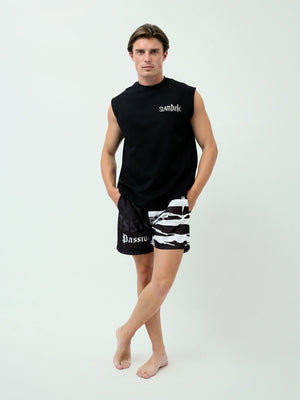 شورت سباحة رجالي عصري بتصميم مزخرف بألوان تجمع ما بين الأبيض والأسود في مزيج أنيق، مثالي للمناسبات الصيفية والأنشطة المائية. يتميز بخصر مرن مع حزام قابل للتعديل لتوفير الراحة أثناء الحركة. هذا الشورت يمثل خيارًا مثاليًا للمسبح أو الشاطئ، ويمكن تنسيقه بسهولة مع تيشيرتات أو قمصان صيفية للحصول على إطلالة منعشة ومريحة.