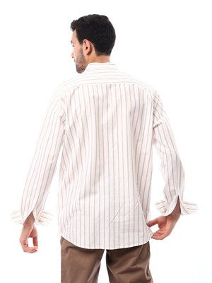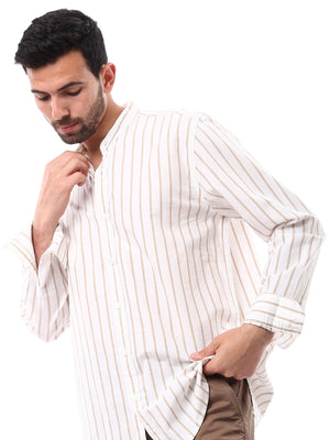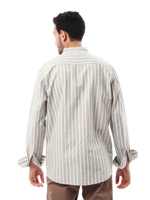 قميص رجالي بأكمام طويلة ومخطط بألوان هادئة، يجمع بين الأناقة والراحة في تصميم واحد. مصنوع من قماش ناعم ومريح، يتميز بالخطوط البيضاء على خلفية اللون الزيتوني الفاتح، مما يضفي مظهراً عصريًا وأنيقًا. يمكن ارتداؤه في الأوقات غير الرسمية أو للمناسبات الكاجوال، ليعكس ذوقك الرفيع في اختياراتك للملابس.