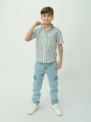 إضف لمسة من الأناقة إلى إطلالة طفلك مع هذا القميص العصري ذو الأكمام القصيرة، المصمم بخطوط طولية متباينة. يتميز القميص بتصميم بسيط وأنيق يناسب جميع المناسبات غير الرسمية والأنشطة اليومية. مصنوع من خامات مريحة وناعمة، مما يضمن راحة كاملة طوال اليوم. تصميمه العصري والخفيف يجعله الخيار المثالي لفصل الصيف، ليمنح طفلك مظهرًا جذابًا ومرتاحًا.