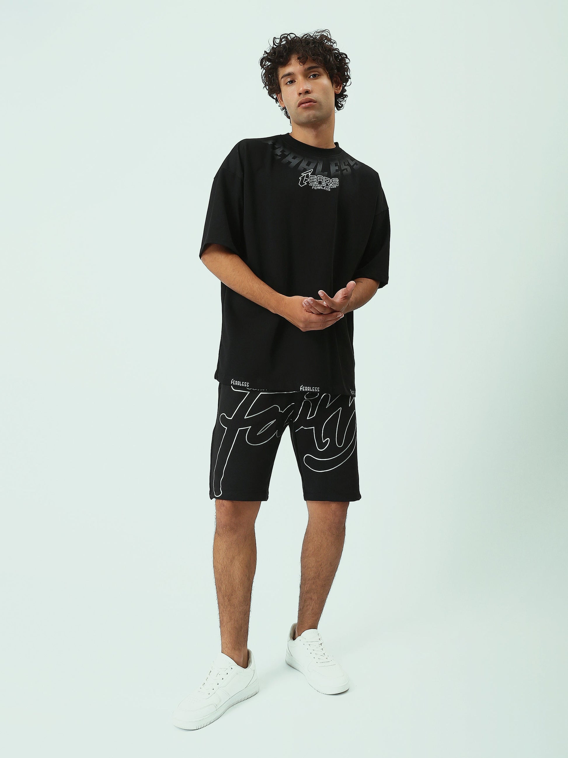 T-shirt Homme Noir Oversized Imprimé Fearless – Style Streetwear - TSH25SPRO20524TM1