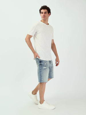 أضف لمسة من الأناقة العصرية إلى إطلالتك مع هذا الشورت الجينز الرجالي. يأتي بتصميم عصري مع تمزقات تمنحك مظهراً شبابياً ومريحاً. بفضل لونه الفاتح وقصته المثالية، يعد خياراً رائعاً للارتداء في الأيام الحارة أو خلال الأنشطة غير الرسمية. يمكن تنسيقه بسهولة مع القمصان أو التيشرتات للحصول على إطلالة مريحة وأنيقة طوال اليوم.