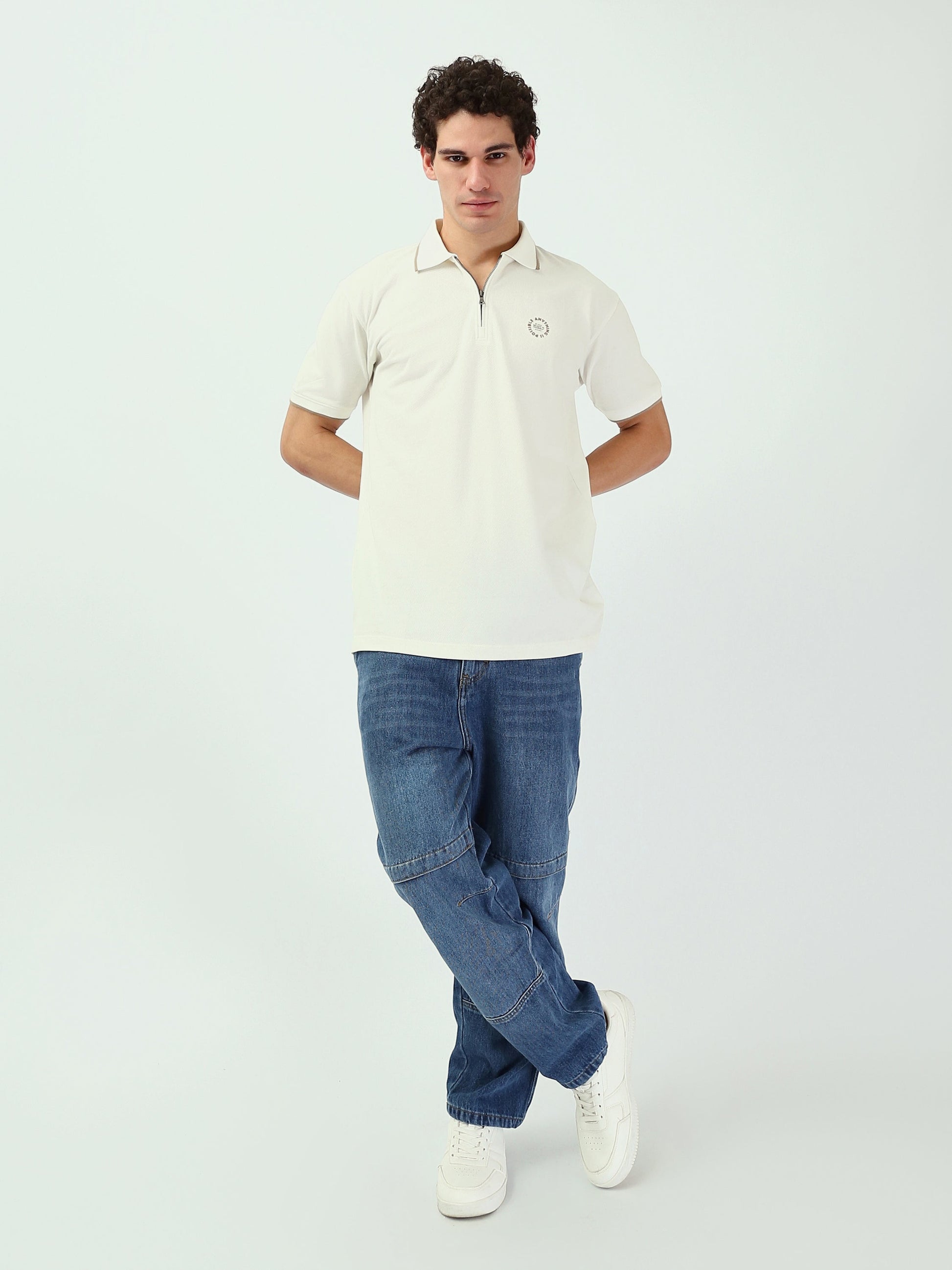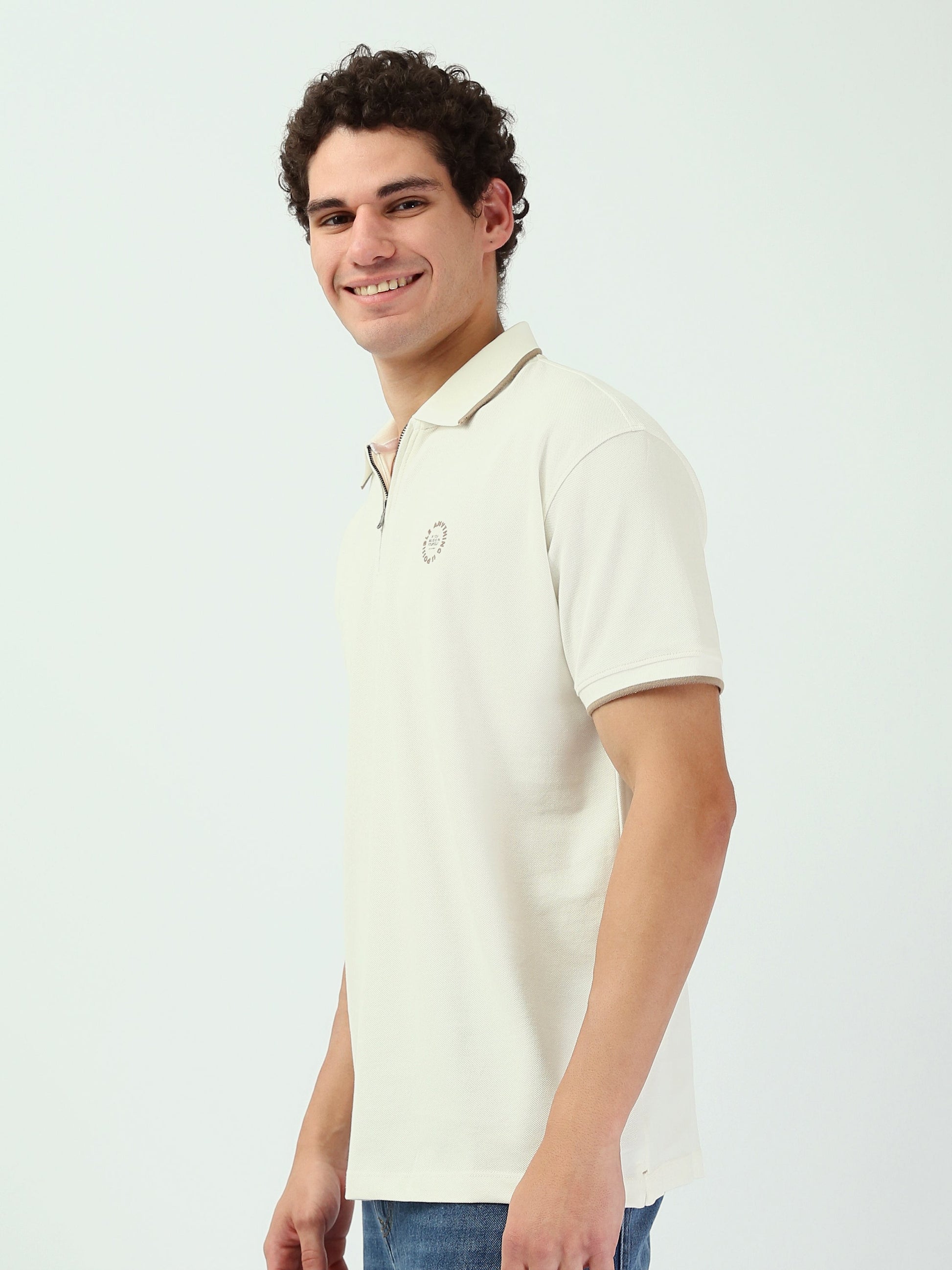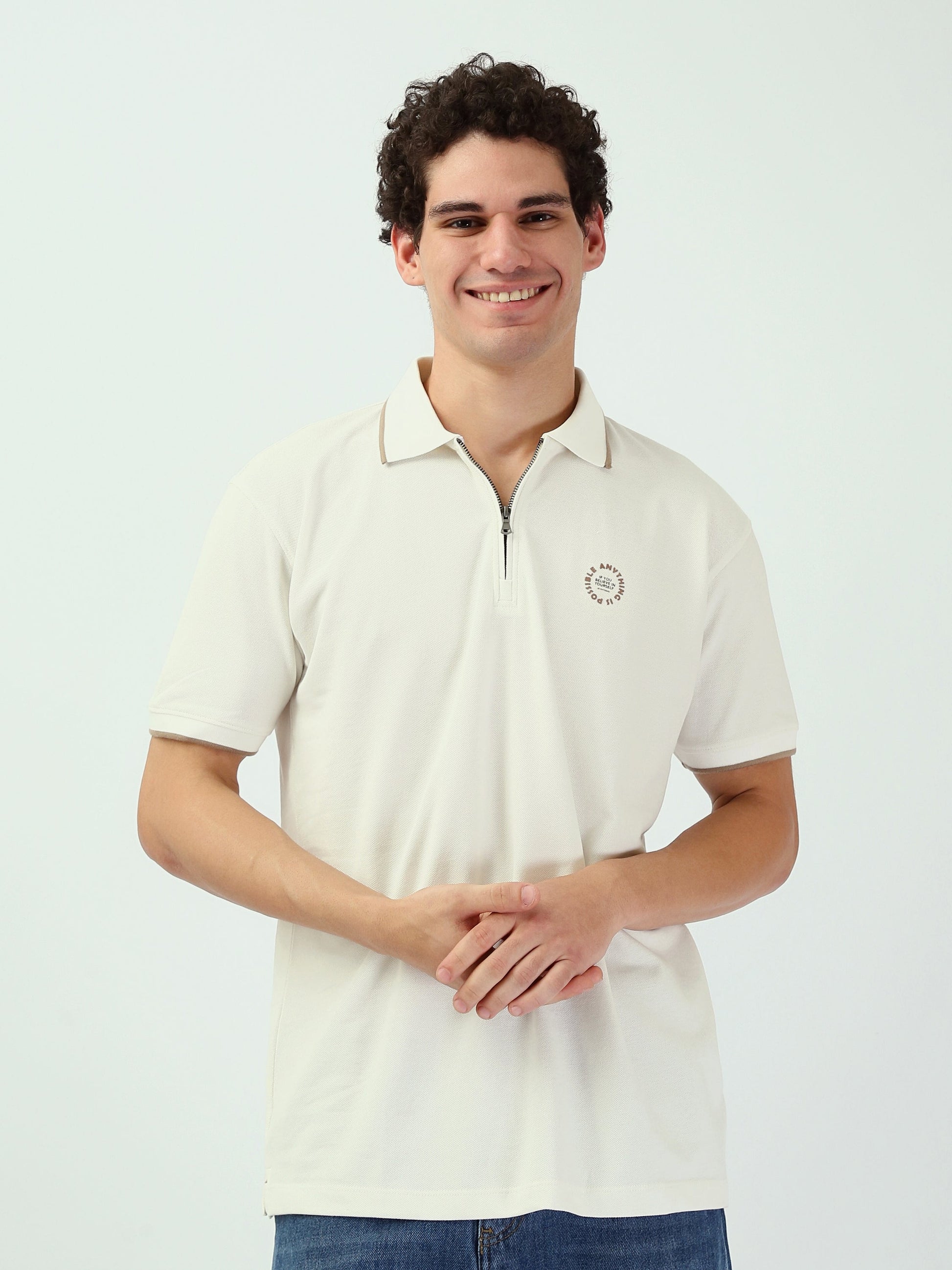 تي شيرت بولو رجالي أوف وايت مع سحاب - POS25SBPW21052TM1