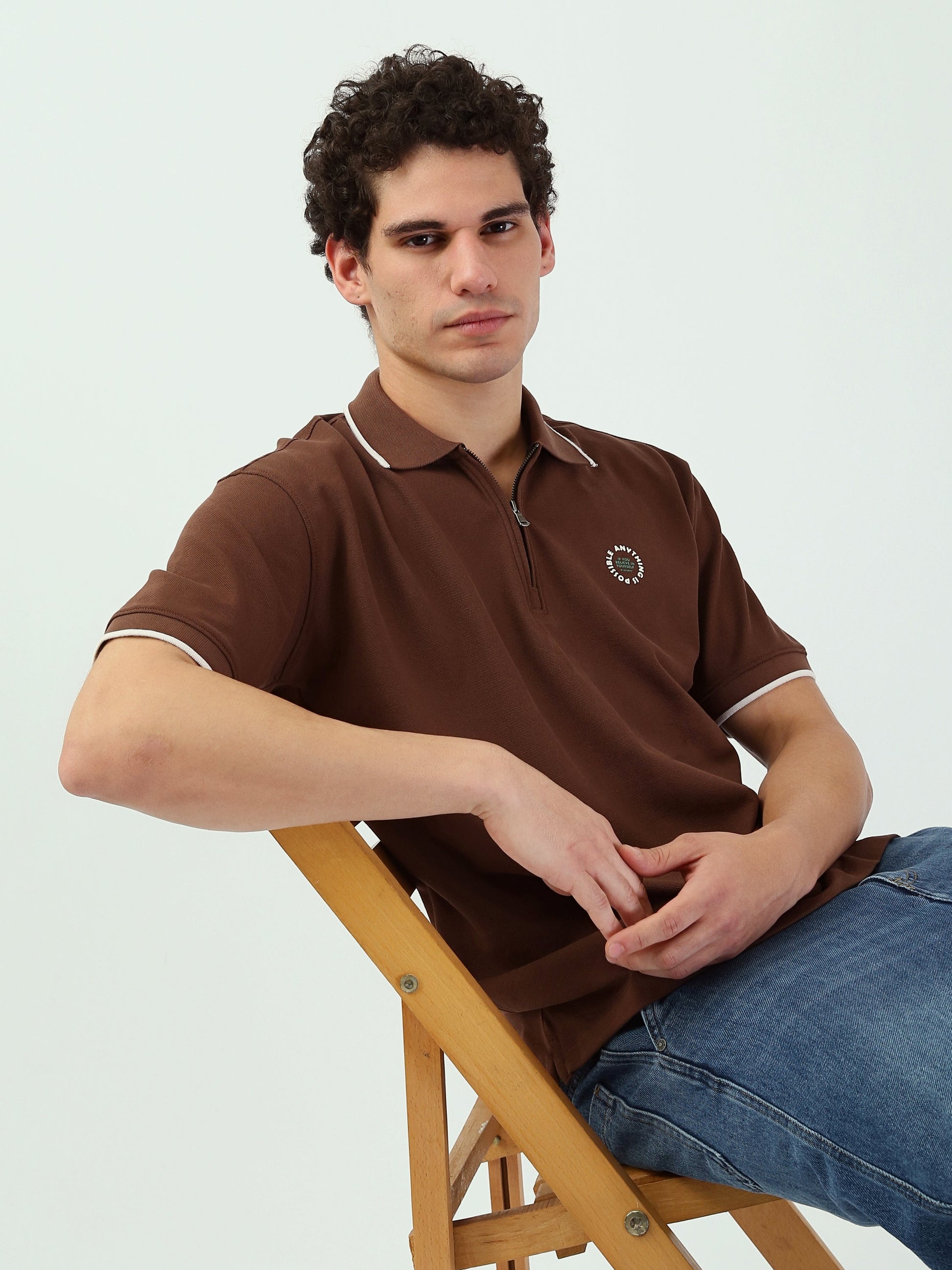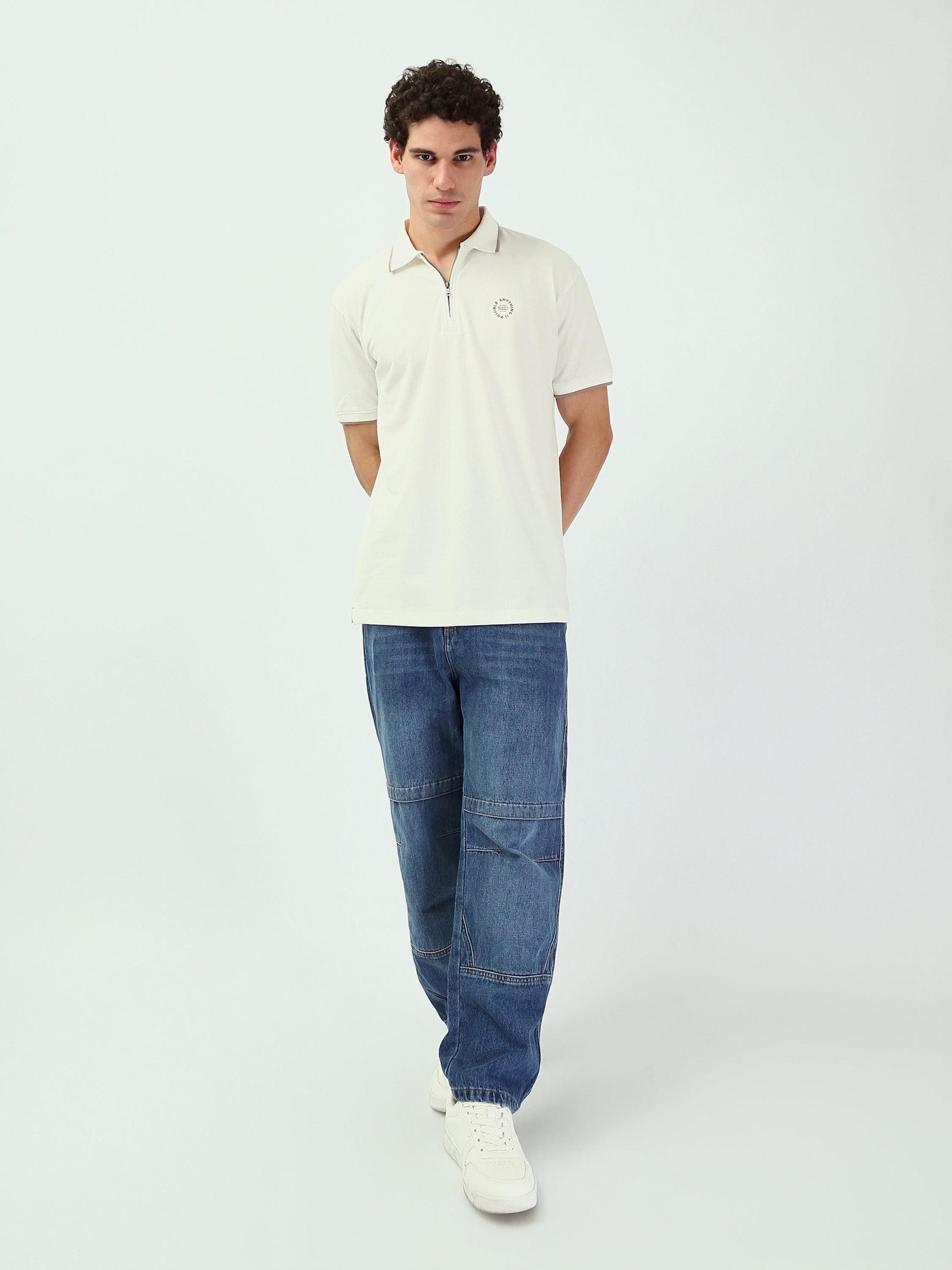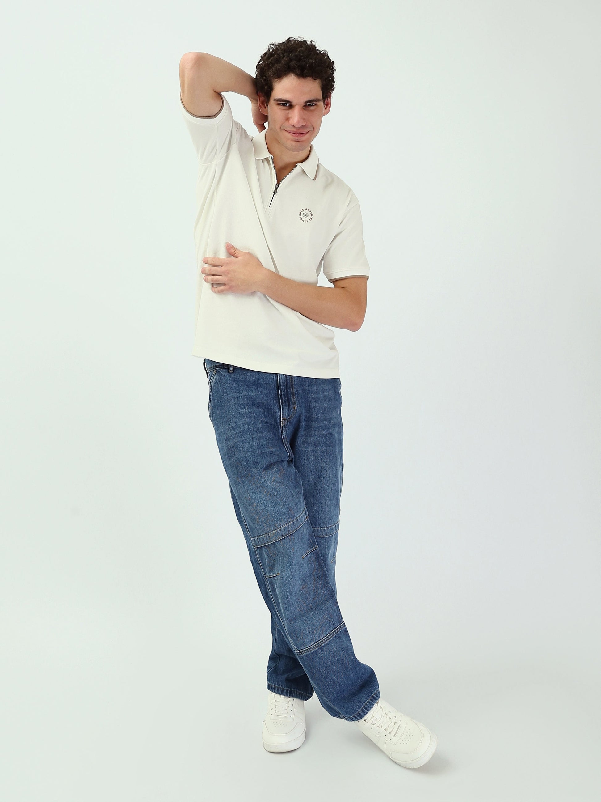 تي شيرت بولو رجالي أوف وايت مع سحاب - POS25SBPW21052TM1