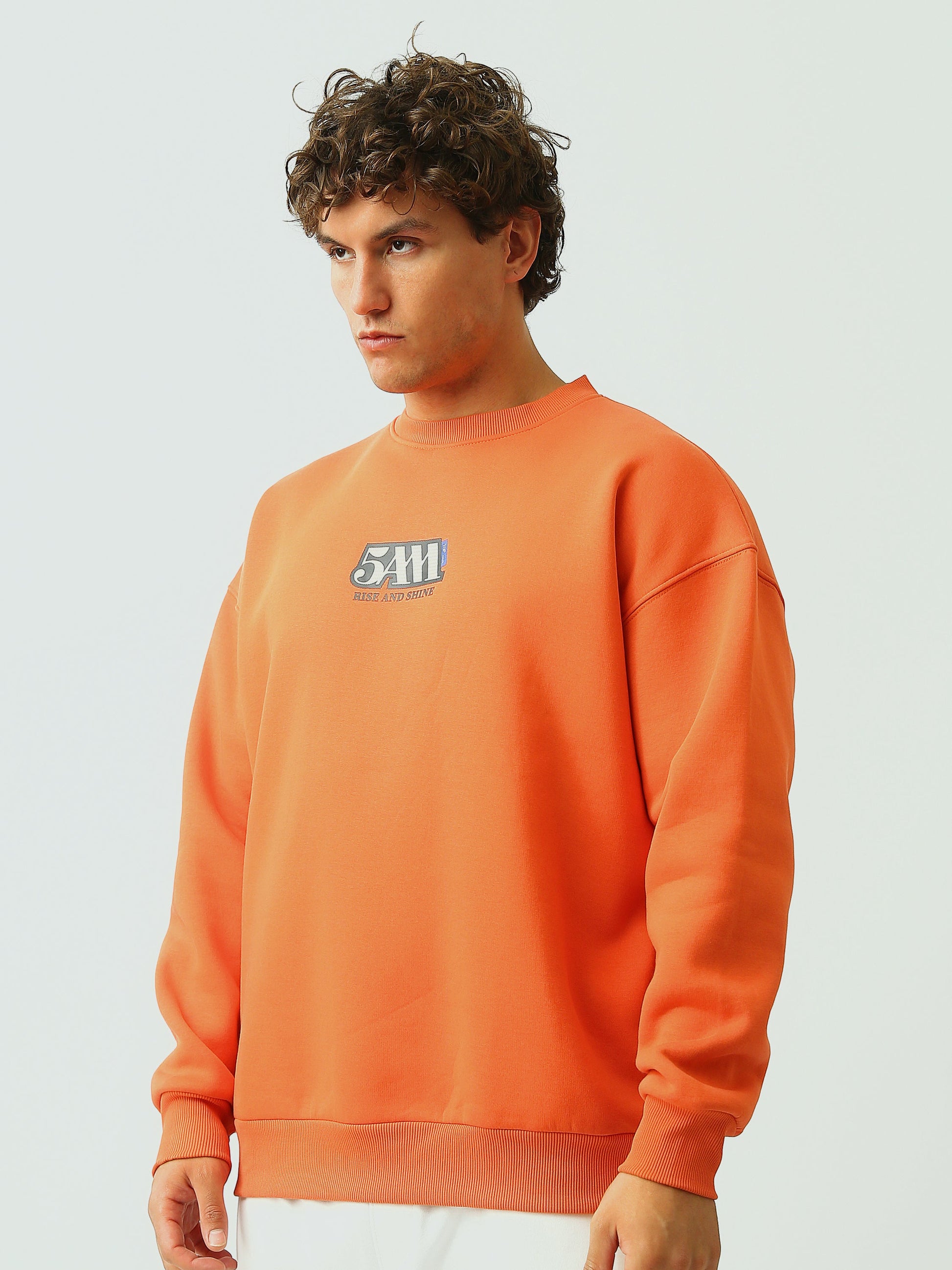 سويت شيرت رجالي باللون البرتقالي مع ياقة دائرية بستايل عصري - SWS26WRNL26581TM1