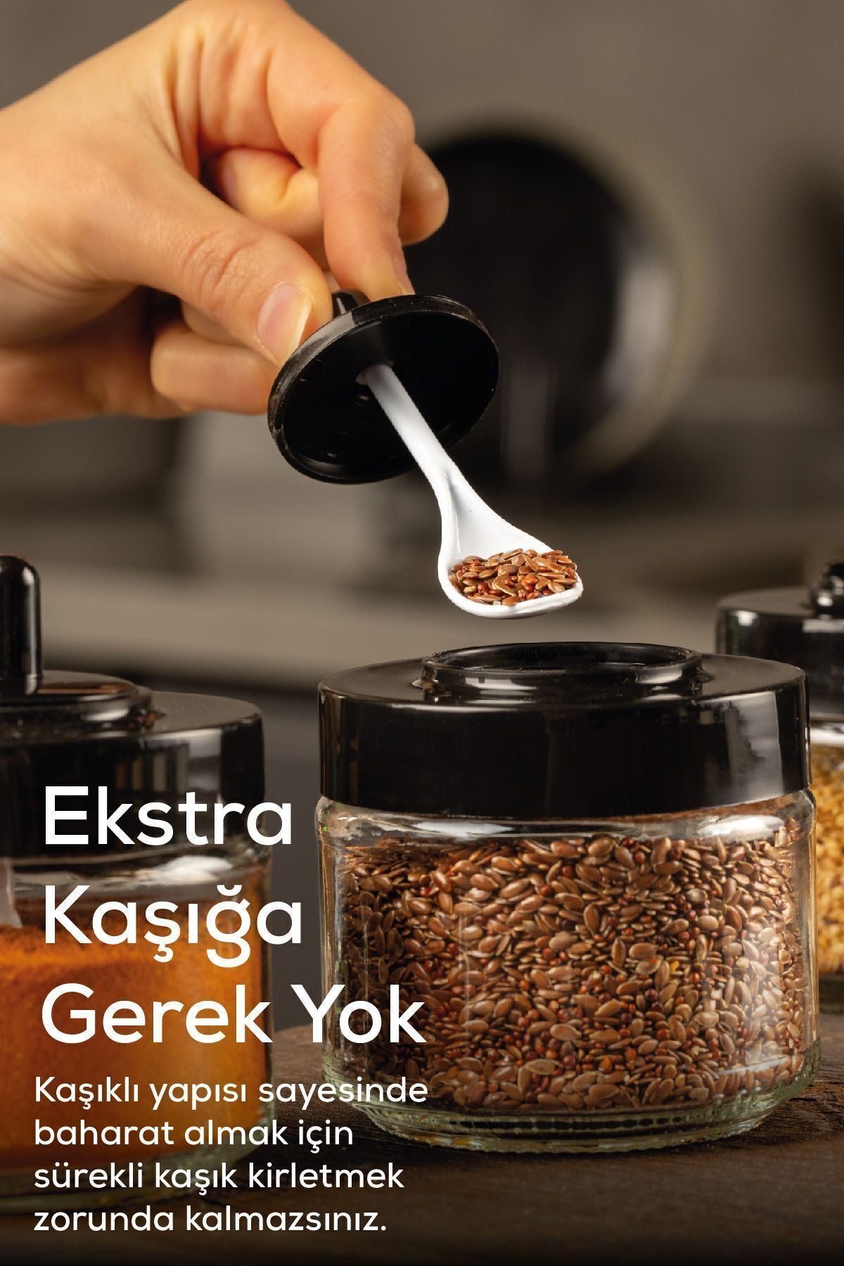 الطقم يتكون من 12 برطمان توابل زجاجي بسعة 300 مل