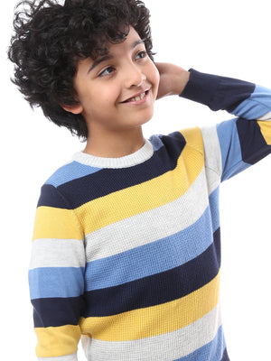 Sweat-shirt pour garçon moderne avec des couleurs coordonnées et des rayures, ajoutant une touche dynamique au look de l'enfant. Il présente une coupe confortable avec des manches longues et des bords ajustés aux poignets pour maintenir un look soigné. Fabriqué dans un tissu doux, il offre un confort optimal toute la journée, ce qui en fait un choix idéal pour les sorties quotidiennes ou diverses activités. Il se marie facilement avec un jean ou un pantalon en tissu pour un look à la fois confortable et moderne.