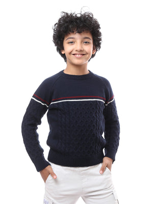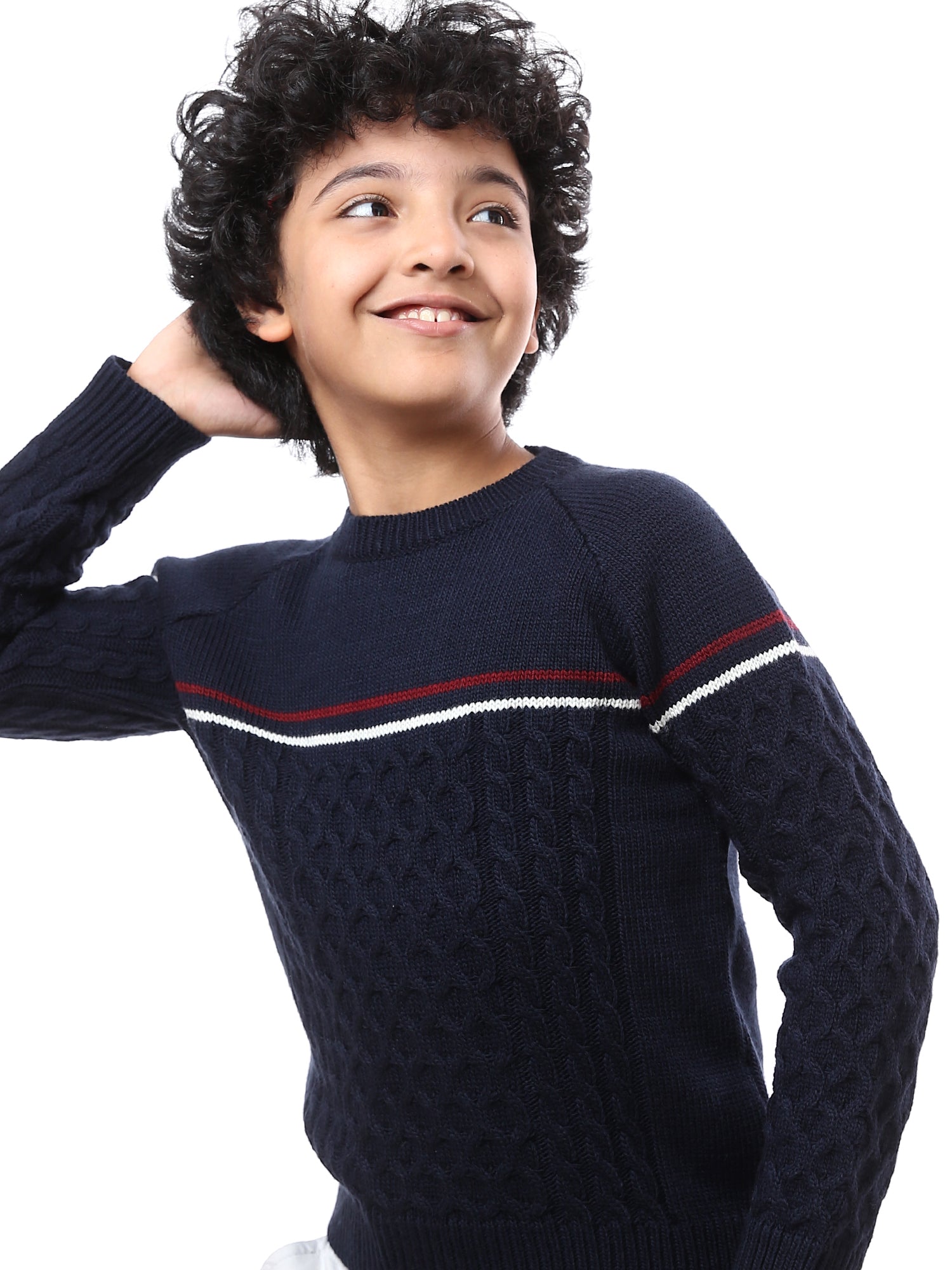 Sweat-shirt pour garçon élégant au design moderne, apportant une touche jeune et distinctive. Il se distingue par des détails tricotés au dos et sur les manches, avec des lignes colorées qui ajoutent de la vivacité au look. Il est équipé d'un col rond et de manches longues avec des bords ajustés aux poignets pour un confort optimal. Fabriqué dans un tissu chaud, il offre un confort toute la journée, ce qui en fait un choix parfait pour l'hiver ou les journées fraîches. Il se marie facilement avec un jean ou un pantalon en tissu pour un look décontracté et élégant.