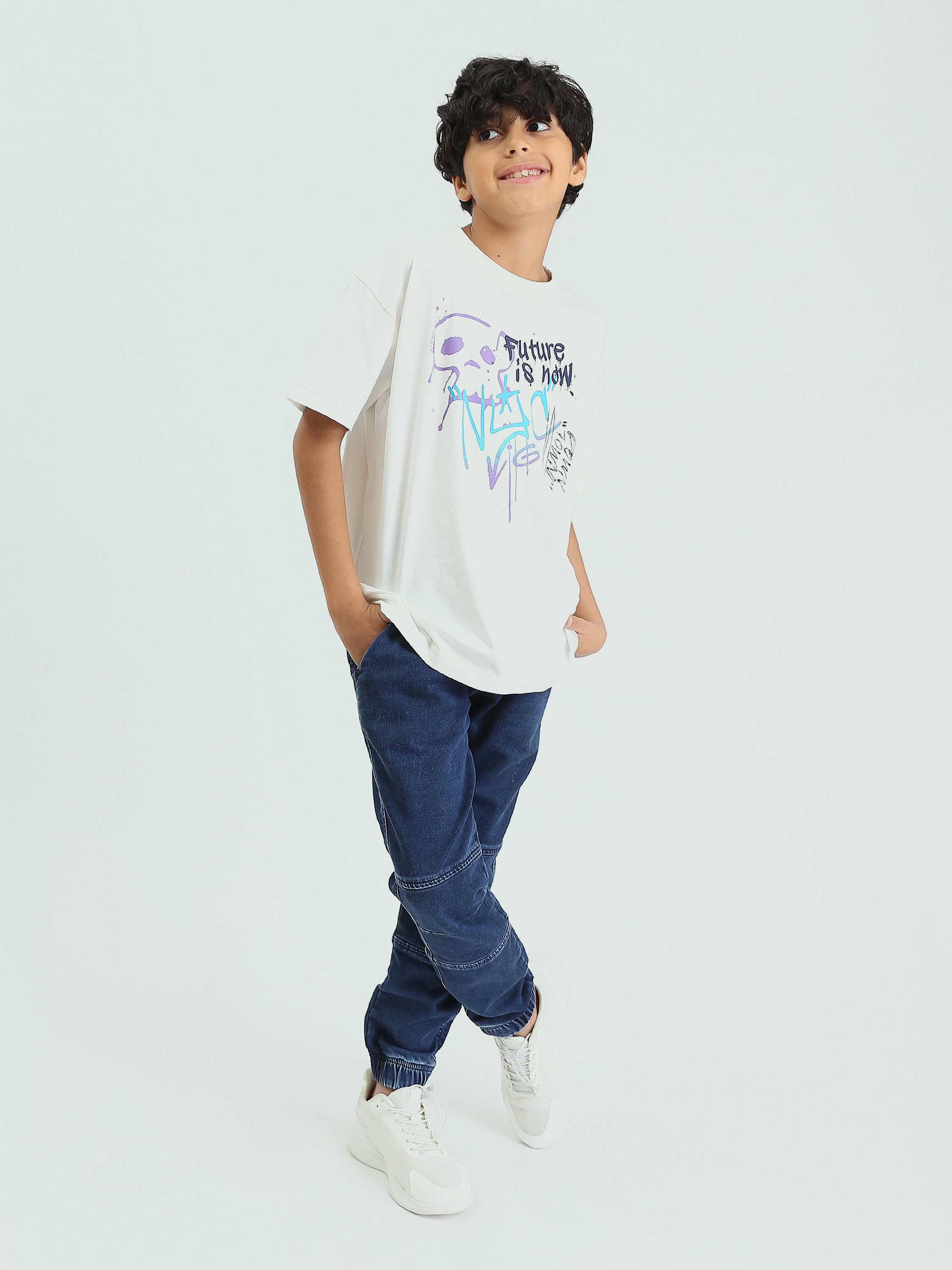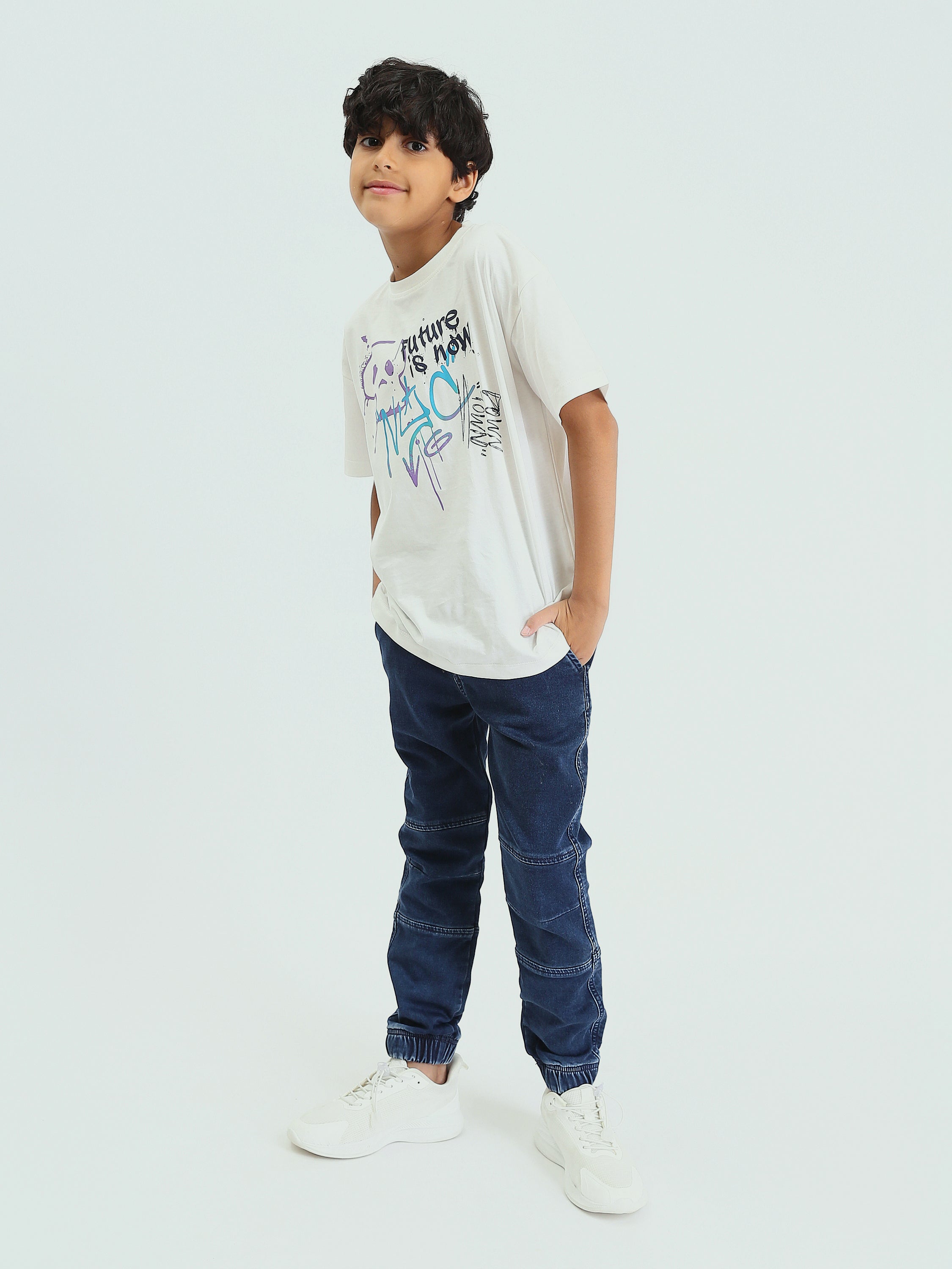 Pantalon en jean confortable et moderne, spécialement conçu pour les garçons. Il est fabriqué à partir d'un tissu robuste et confortable, avec une taille élastique ajustable pour un confort supplémentaire. Le pantalon présente des détails élégants tels que des poignets au bas des jambes, ajoutant un look contemporain, idéal pour les occasions quotidiennes et diverses activités. Parfait pour l'école ou les activités sportives, offrant à la fois liberté de mouvement et élégance.