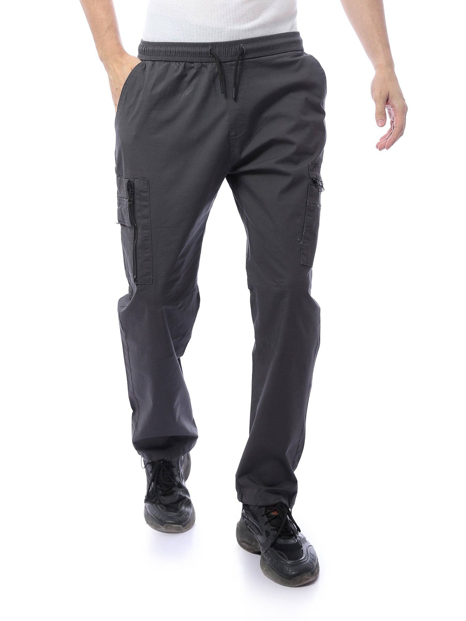 Pantalon cargo homme moderne, confectionné dans une matière confortable et résistante aux déchirures, avec une taille ajustable pour un maintien optimal. Son design pratique comprend des poches latérales zippées, idéales pour transporter vos effets personnels en toute sécurité. Parfait pour les looks quotidiens et les activités en extérieur, il se porte facilement avec une chemise ou un t-shirt pour un style décontracté et élégant.