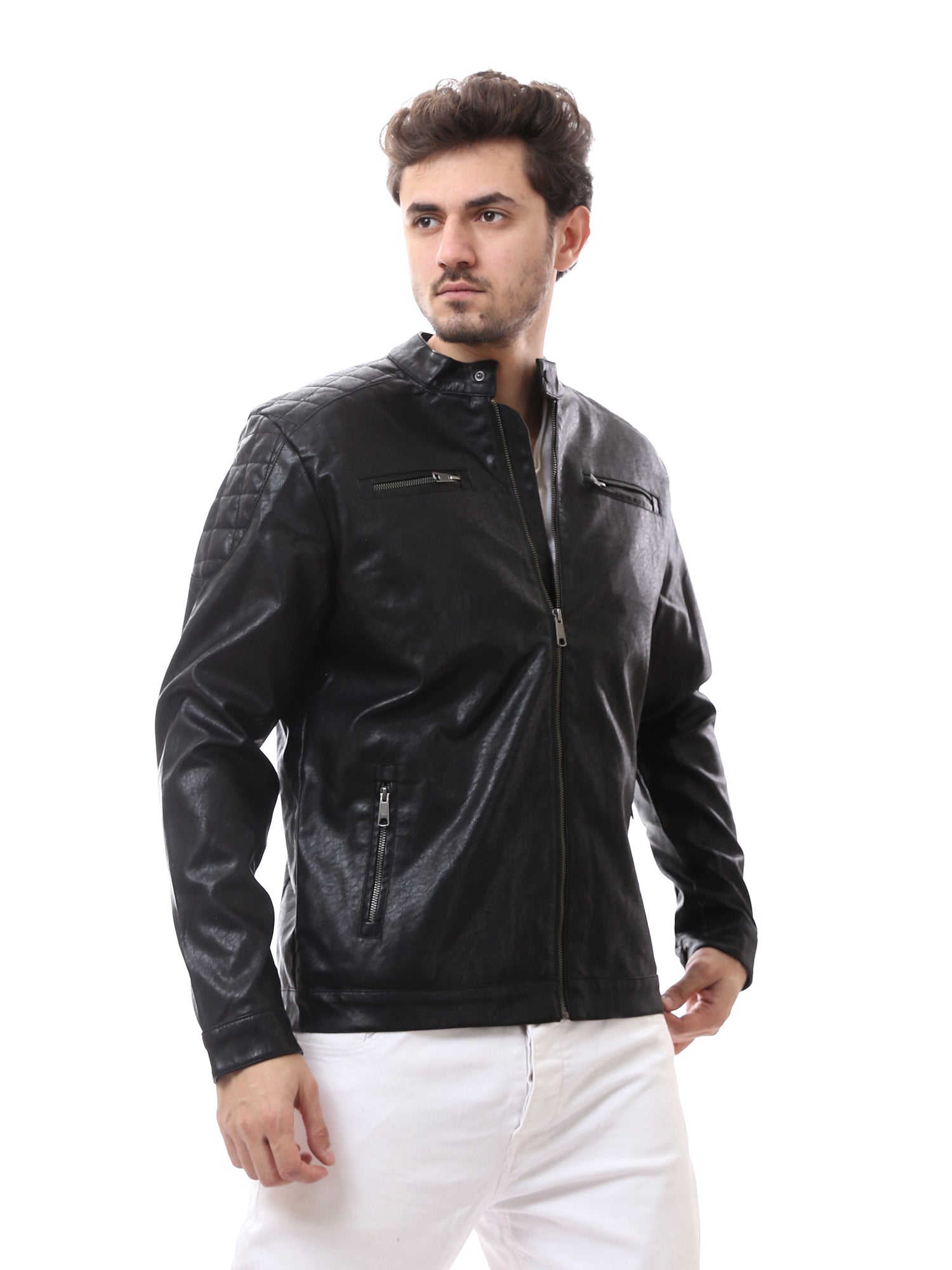 Veste homme confectionnée en cuir de haute qualité au design moderne offrant une allure affirmée et soignée. Elle est dotée d’une fermeture zippée frontale intégrale facilitant l’enfilage, ainsi que d’un col court avec bouton apportant une touche élégante. Les poches avant zippées permettent de garder les essentiels en toute sécurité, tandis que la coupe confortable s’adapte parfaitement aux tenues quotidiennes et casual. Un choix idéal pour ceux qui recherchent style et praticité durant les saisons intermédiaires et froides.