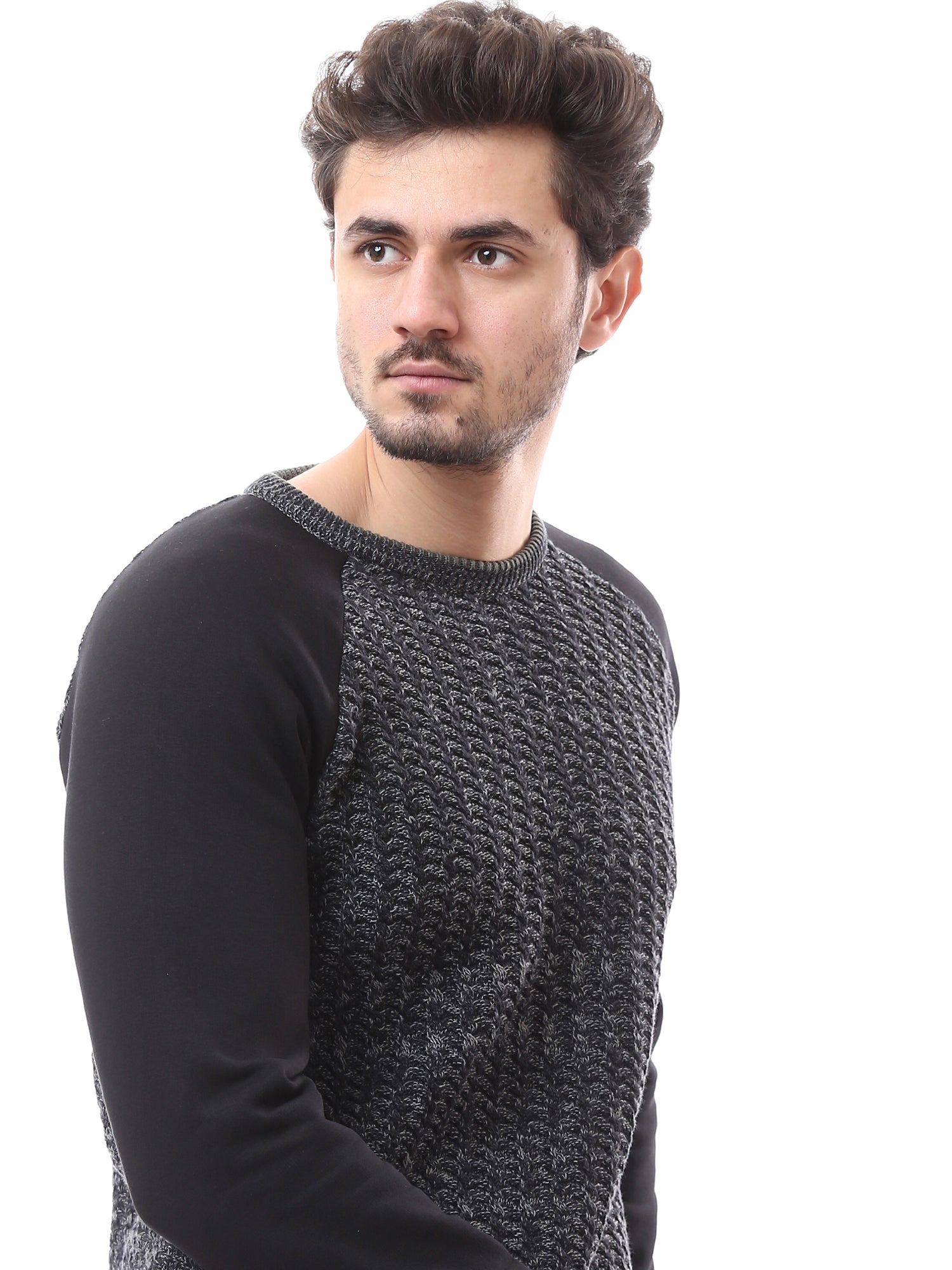 Sweat-shirt pour homme élégant au design moderne, alliant les couleurs noire et grise. Il présente une coupe confortable avec des détails tricotés sur le devant, ajoutant une touche d'élégance. Les manches longues et le col rond assurent un confort optimal tout au long de la journée, tandis que les bords ajustés aux poignets et au bas garantissent une silhouette soignée. Parfait pour des looks décontractés ou des sorties quotidiennes, il se marie facilement avec un jean ou un pantalon en tissu pour un look moderne et confortable.