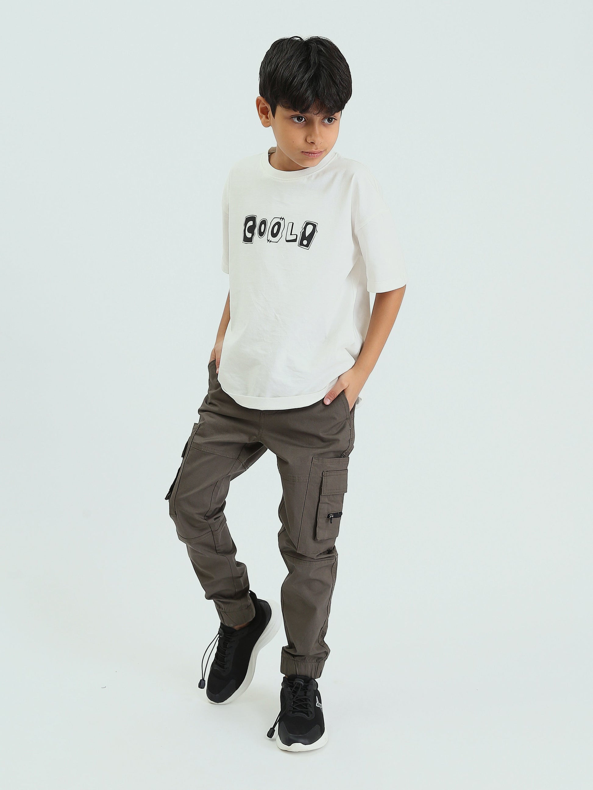 Pantalon de sport garçon à taille élastique avec poches latérales au design moderne - JOG23SGBL24259TB1