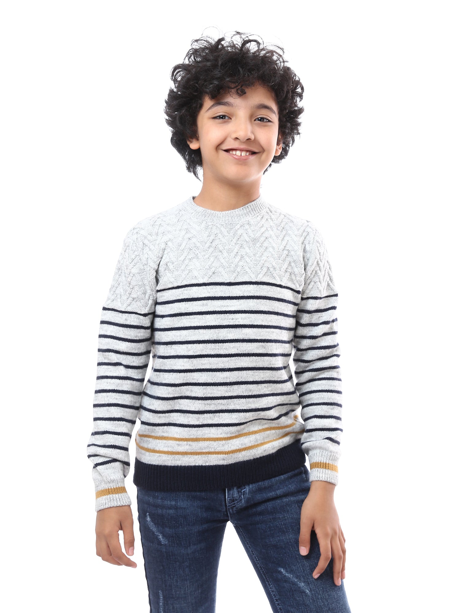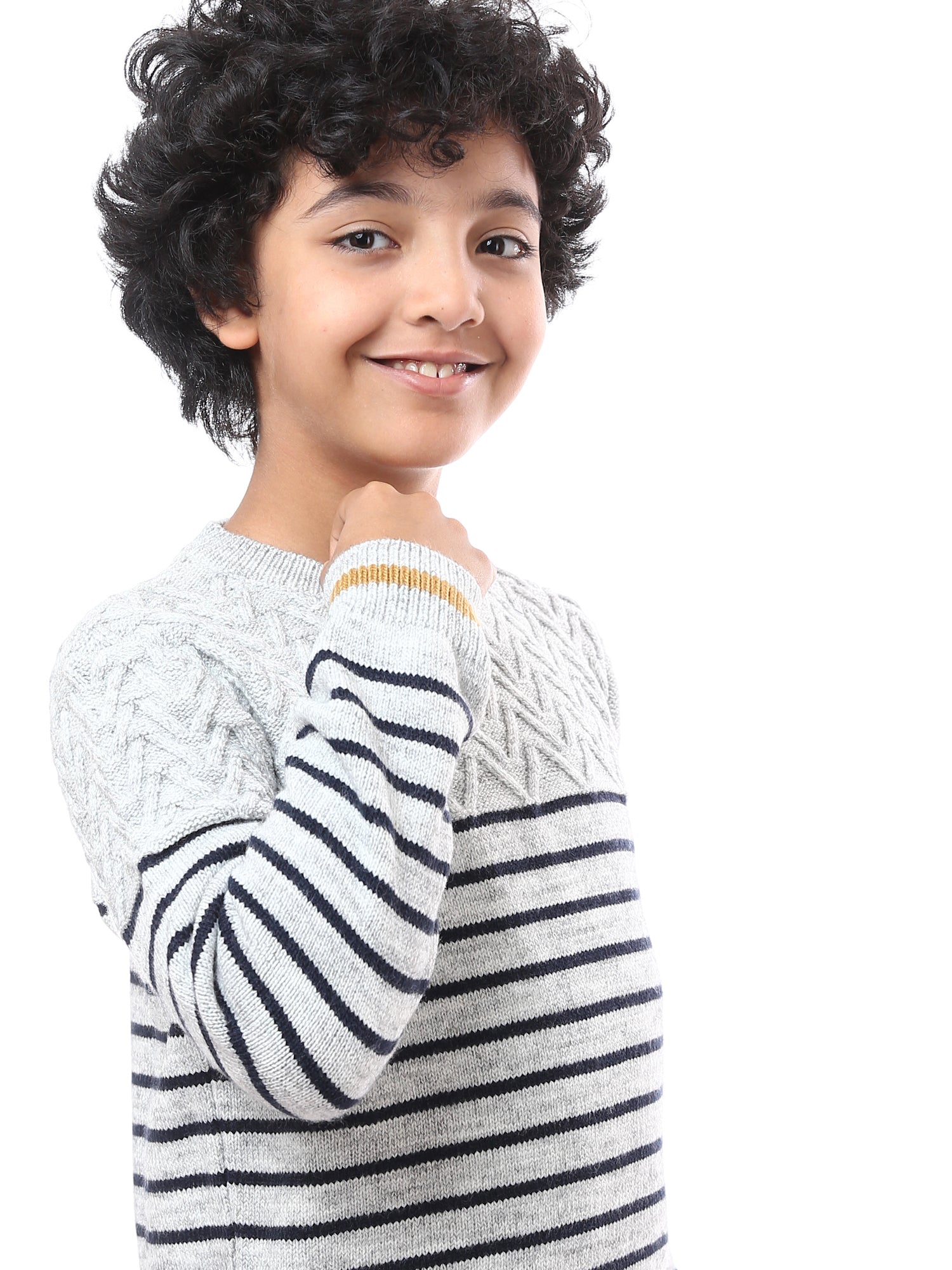 Sweatshirt pour enfants décoré de rayures horizontales dans des couleurs distinctives, offrant un look moderne et confortable. Il se distingue par son design contemporain, parfait pour les looks quotidiens, avec des bords tricotés pour un confort supplémentaire. Confectionné dans un tissu doux et chaud, il est idéal pour les saisons froides ou les tenues décontractées. Facile à assortir avec des jeans ou des pantalons en tissu pour un look à la fois moderne et élégant.