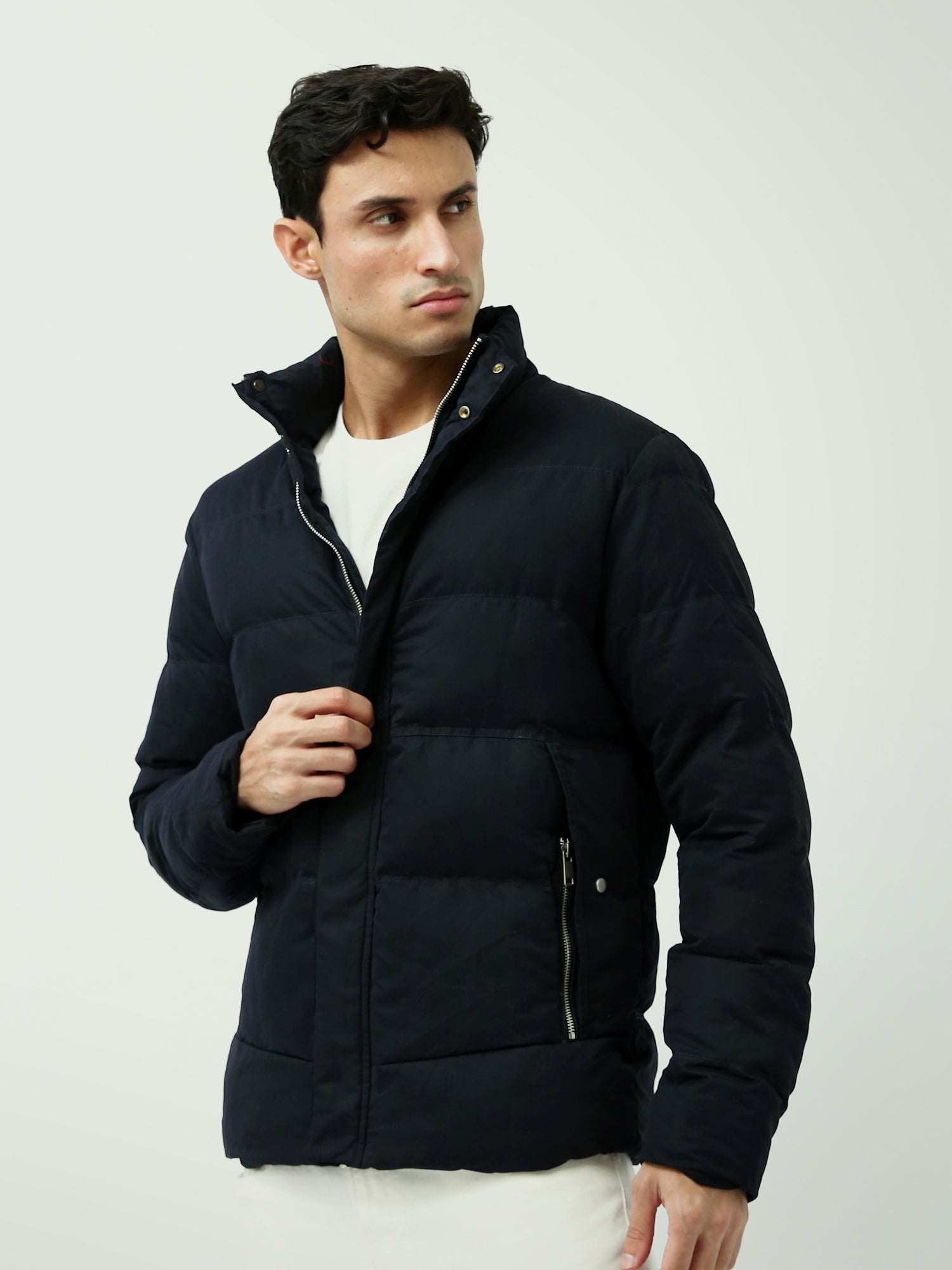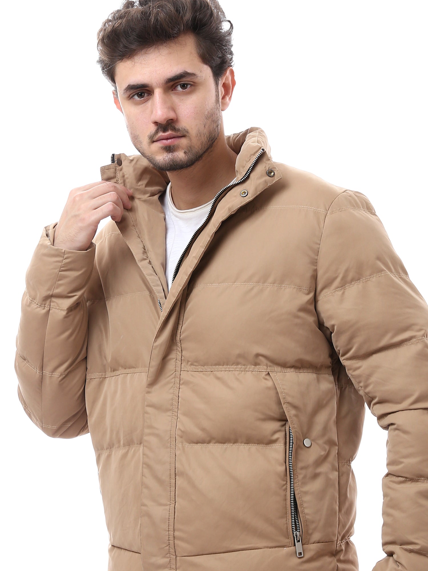 Veste homme d’hiver au design matelassé offrant une excellente chaleur, idéale pour les journées froides. Elle se distingue par un col montant assurant une protection supplémentaire contre le vent, ainsi qu’une fermeture zippée frontale intégrale facilitant l’enfilage, complétée par une patte de boutonnage pour une isolation renforcée. Les poches latérales spacieuses et zippées offrent un espace pratique pour ranger les essentiels. Sa conception confortable et résistante en fait un choix parfait pour un usage quotidien et des looks casual pendant la saison hivernale.