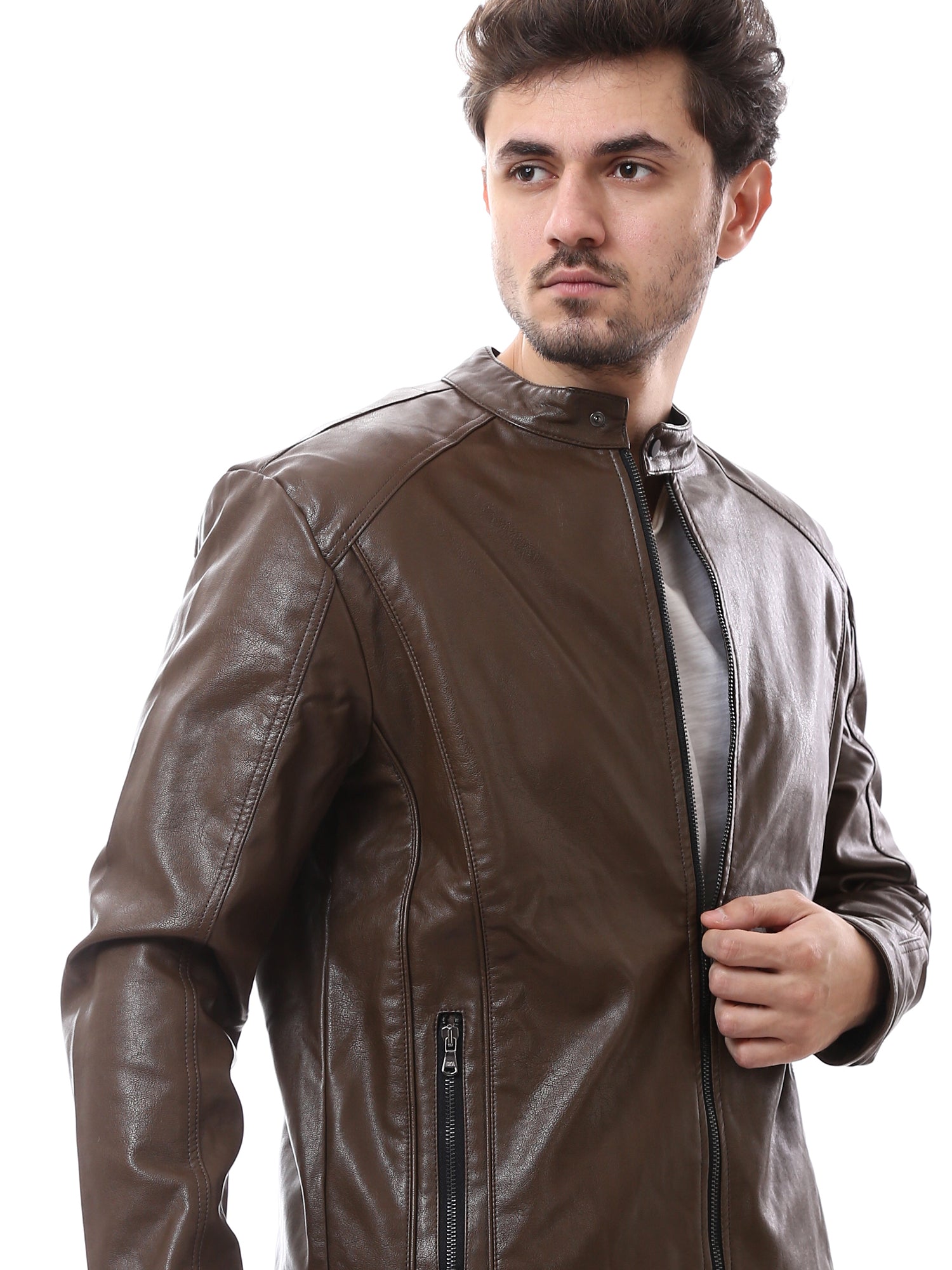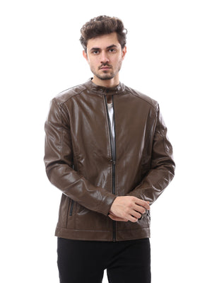 Veste Homme Marron Style Cuir Zippée – Look Moderne et Élégant - JAC24WLBP28360TM1