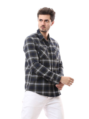 Chemise pour homme à motif à carreaux dans les tons vert olive et blanc, idéale pour des looks décontractés ou semi-formels. Elle présente un col classique et des boutons à l'avant, ce qui en fait un choix parfait pour une utilisation quotidienne ou des occasions informelles. Avec des poches avant qui ajoutent une touche pratique à son style. Fabriquée en tissu doux, elle assure un confort optimal tout au long de la journée et apporte une touche d'élégance simple.