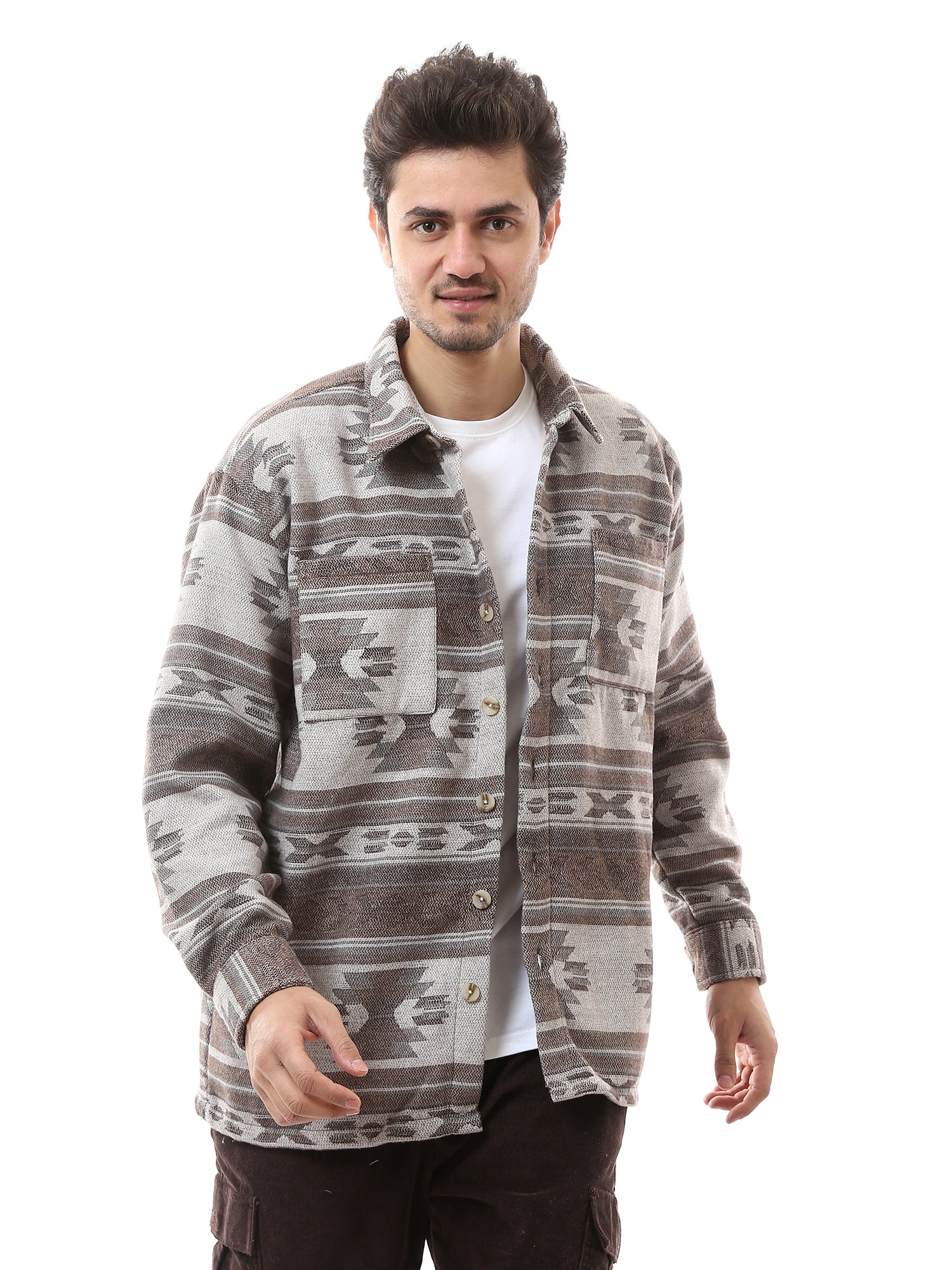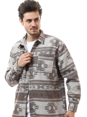 Chemise pour homme au design décoré avec des couleurs marron et blanc, dotée de boutons sur le devant et de manches longues, ce qui en fait un ajout parfait à votre garde-robe. Fabriquée dans un tissu confortable, elle est idéale pour des occasions décontractées et quotidiennes. Cette chemise apporte une touche d'élégance moderne avec son design décoratif unique. Elle peut être portée avec des jeans ou des pantalons en tissu pour un look moderne et attrayant.