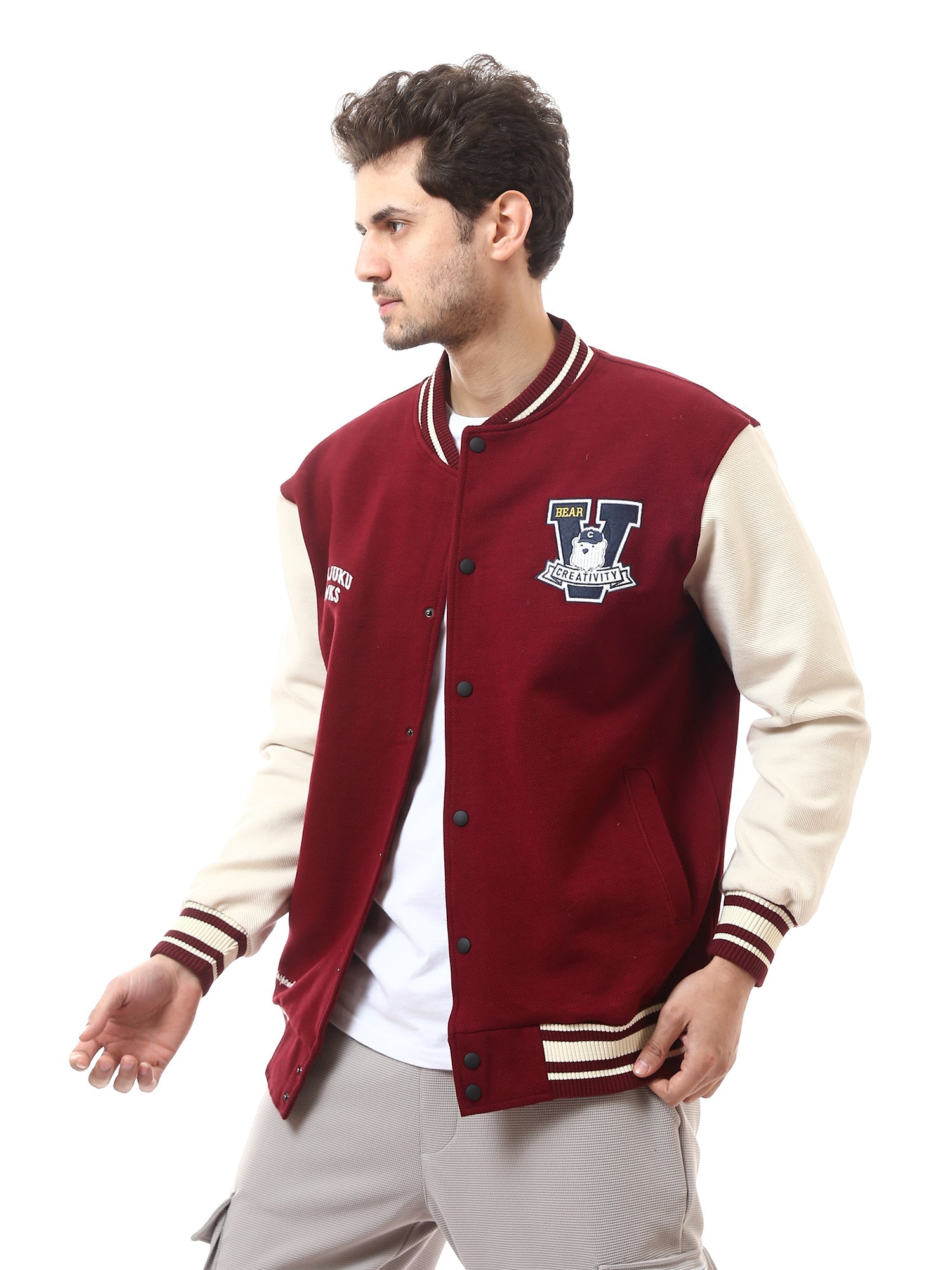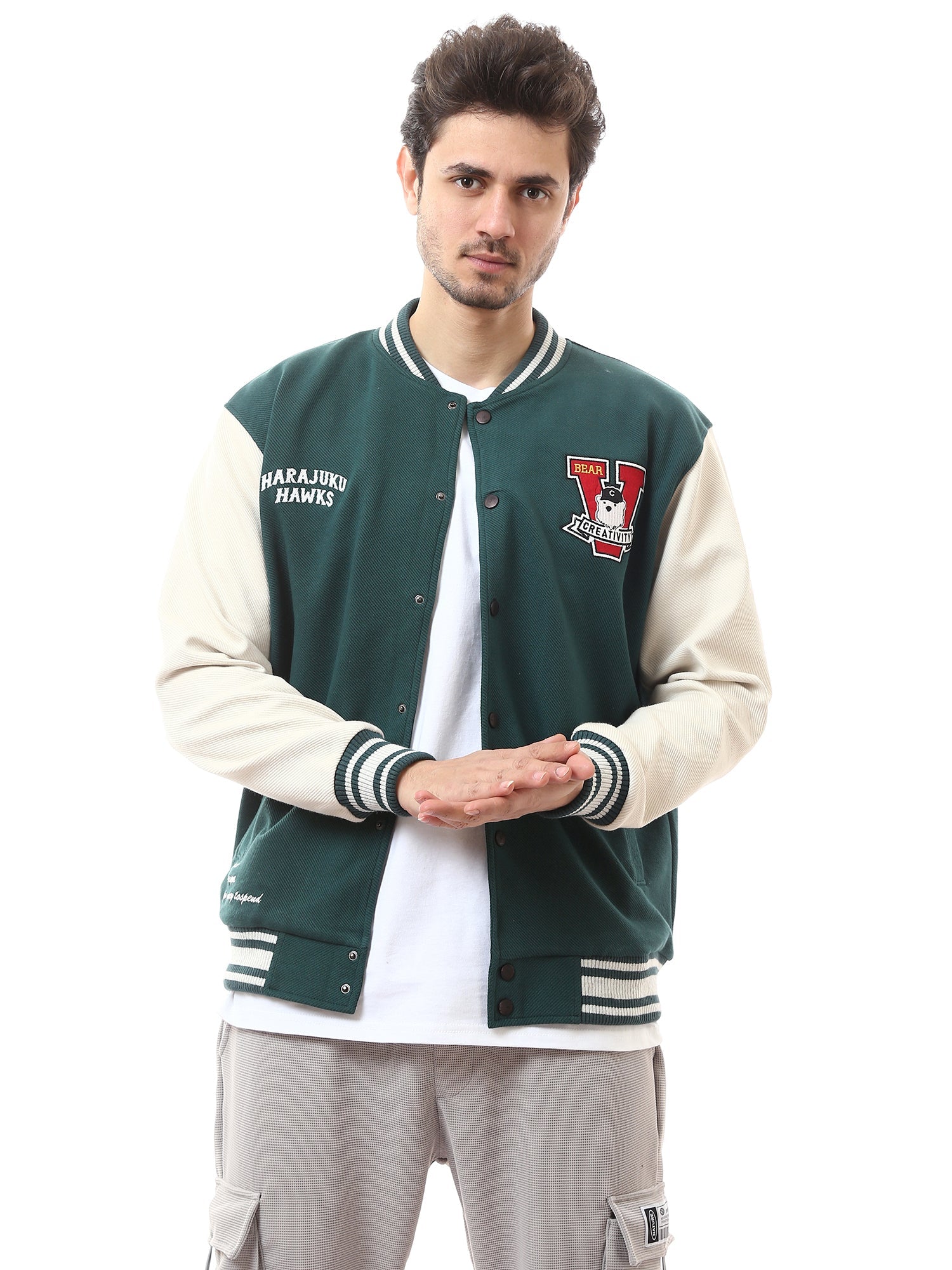 Cette veste bomber oversize pour homme se distingue par son design sportif et ses patchs décoratifs, apportant une touche de style unique et moderne à votre look. Confortable et tendance, elle est parfaite pour un style décontracté ou streetwear.