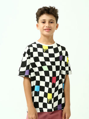 Un t-shirt tendance pour ado avec un imprimé damier noir et blanc rehaussé de touches colorées, parfait pour un look streetwear. Léger et agréable à porter au quotidien, il s’associe facilement avec un jean, un short ou un pantalon cargo.