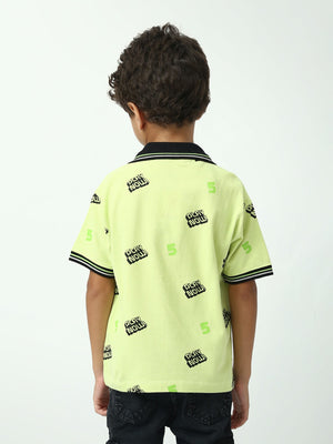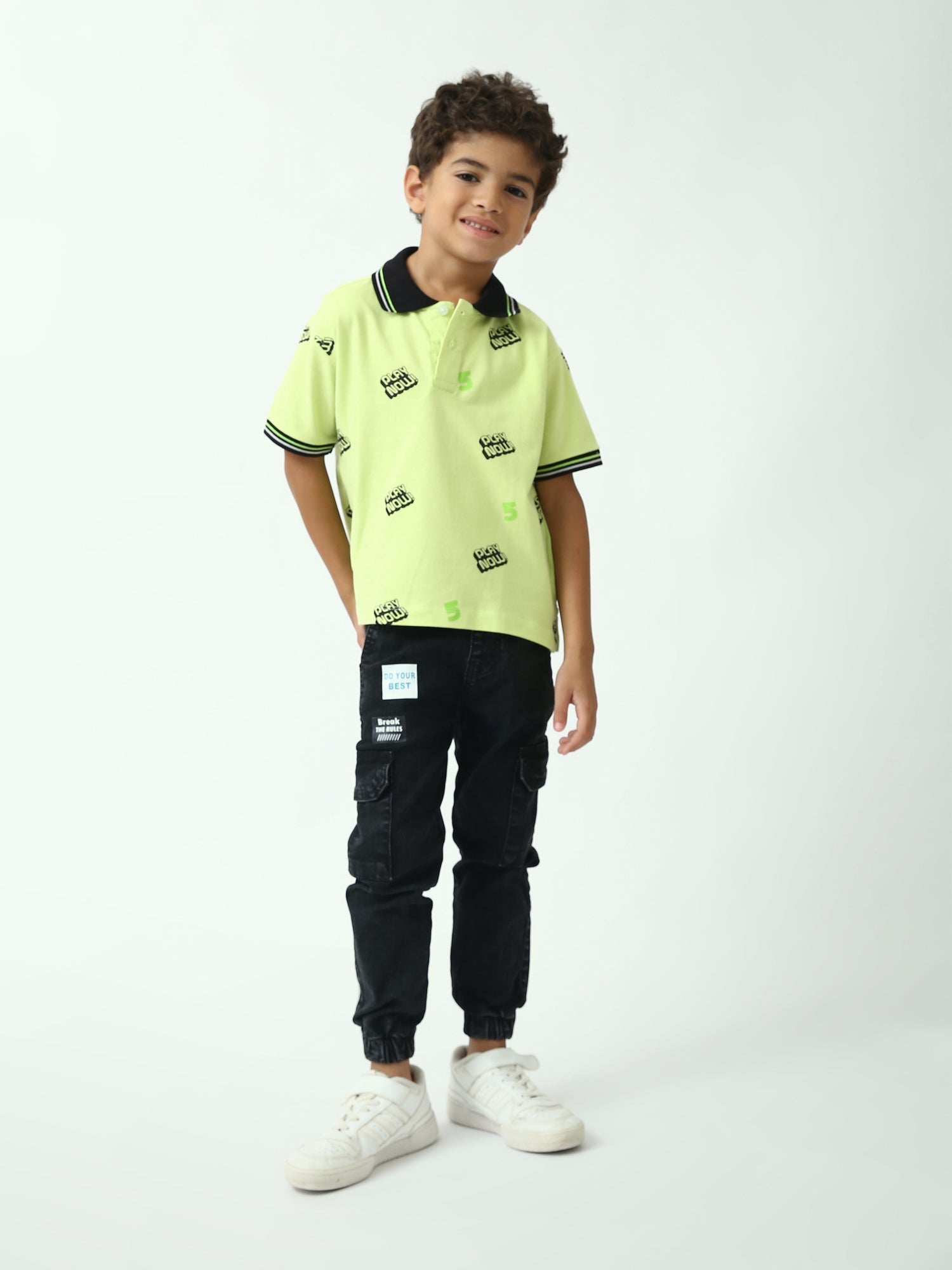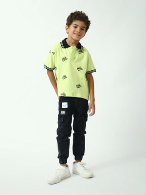 Polo garçon vert néon manches courtes imprimé, col contrasté noir - POS24SAPI75403MB1