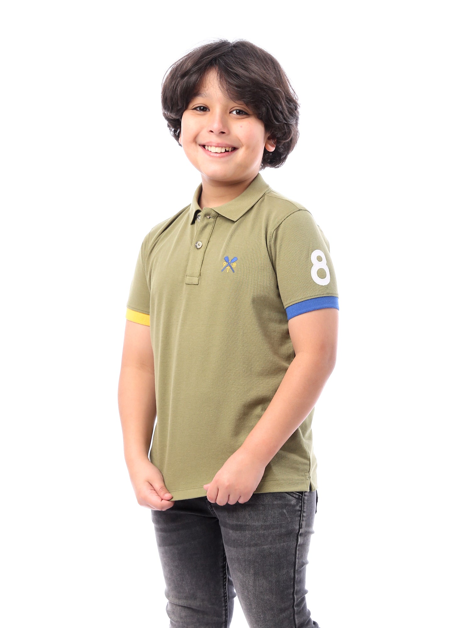 Polo pour enfant avec des détails de couleurs contrastées sur les manches. Ce t-shirt présente un design élégant avec un col polo et des boutons à l'avant, ajoutant une touche d'élégance simple. Le tissu doux assure un confort tout au long de la journée, tandis que les détails modernes apportent une touche distinctive à son look. Idéal pour les occasions décontractées ou pour un usage quotidien, ce polo sera un excellent choix pour l'allure élégante de votre enfant.