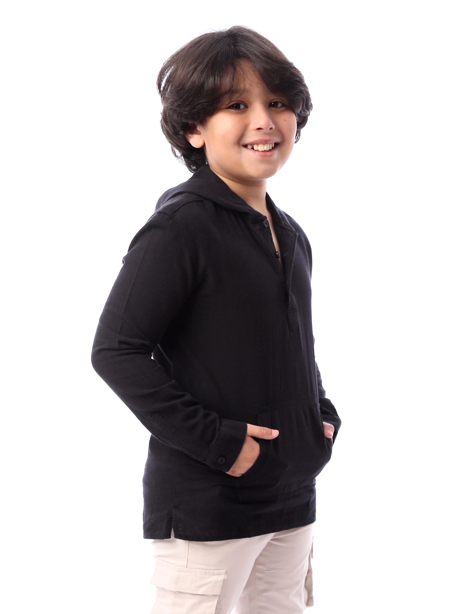Chemise pour garçon confortable au design moderne, alliant praticité et élégance. Elle se distingue par un col avec boutons à l'avant et une capuche, offrant un look jeune et adapté pour un usage quotidien. Dotée d'une grande poche avant, elle permet au garçon de transporter facilement ses petites affaires. Confectionnée dans un tissu léger et confortable, elle est idéale pour l'école, les jeux ou les sorties quotidiennes. Facile à assortir avec des jeans pour un look simple et tendance.