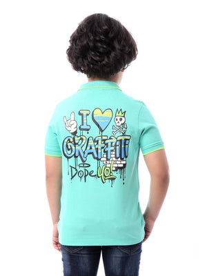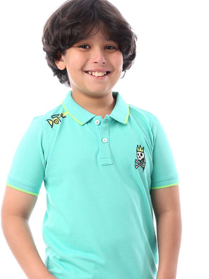 Polo pour garçons en turquoise rafraîchissant, avec un design moderne et un logo artistique sur la poitrine. Il est décoré de lignes jaunes sur le col et les manches, ajoutant une touche de dynamisme et de fraîcheur. Parfait pour les looks quotidiens et les occasions décontractées, ce polo est idéal pour les enfants qui aiment le confort et le style contemporain.