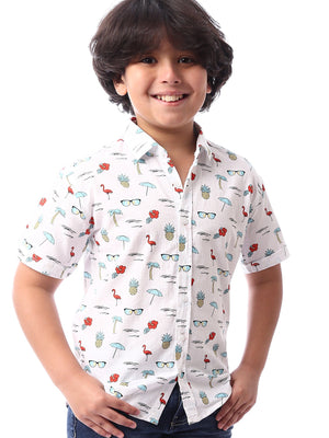 Chemise garçon ornée d’un motif original inspiré de l’ambiance estivale, avec des illustrations de fruits, de lunettes et d’oiseaux. Dotée de manches courtes et d’une fermeture boutonnée sur le devant, elle offre un style moderne et élégant. Idéale pour les tenues quotidiennes des enfants et les occasions décontractées, elle se combine facilement avec un short ou un pantalon pour un look confortable, joyeux et parfait pour les journées chaudes.