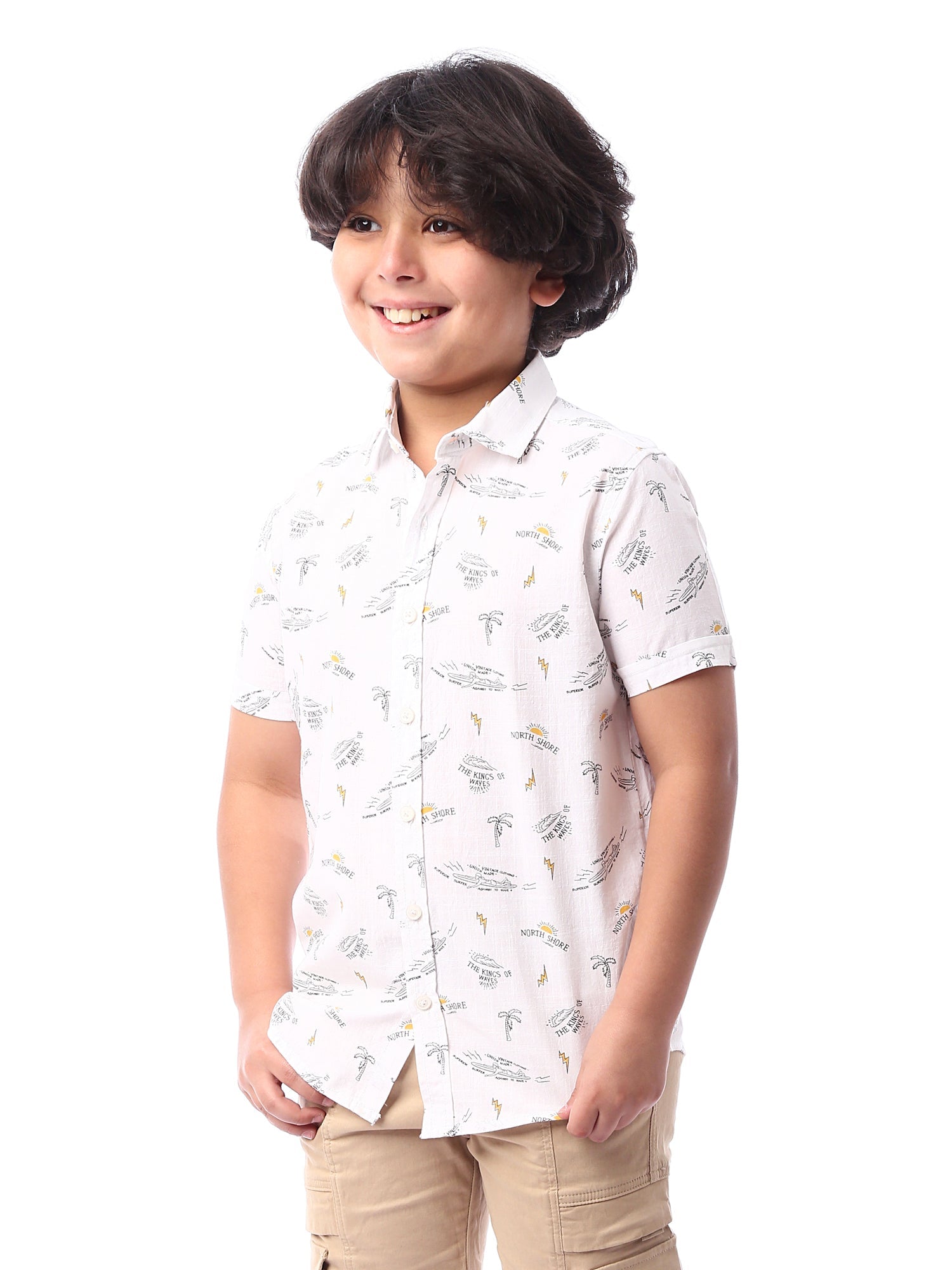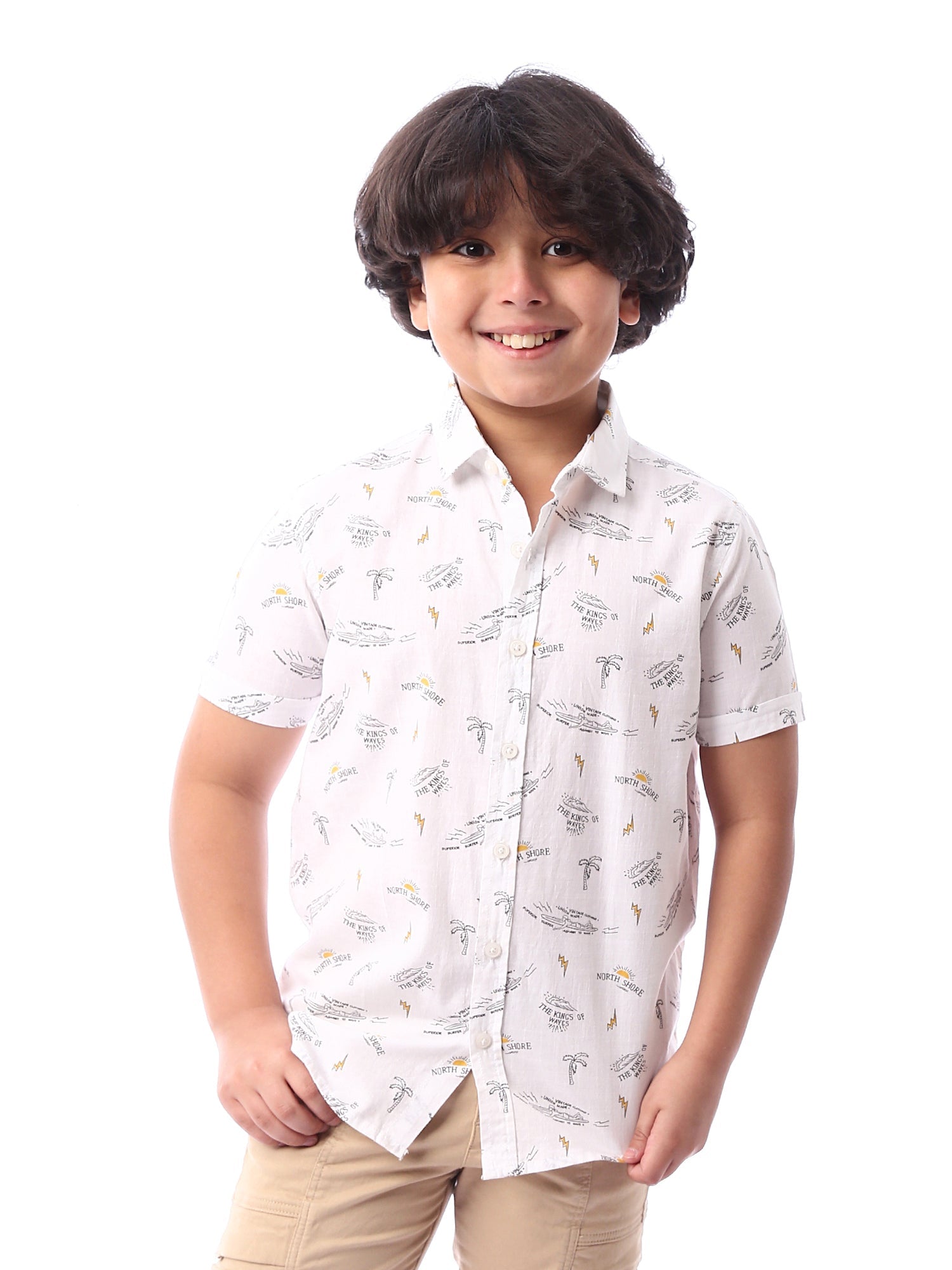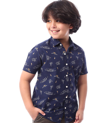 Chemise pour garçon à manches courtes, au design moderne avec des motifs distinctifs ajoutant une touche de vivacité. Fabriqué dans un tissu doux et confortable, avec des boutons à l'avant pour un enfilage facile. Parfait pour les journées ensoleillées et les occasions décontractées, elle offre un look élégant et moderne pour les enfants.