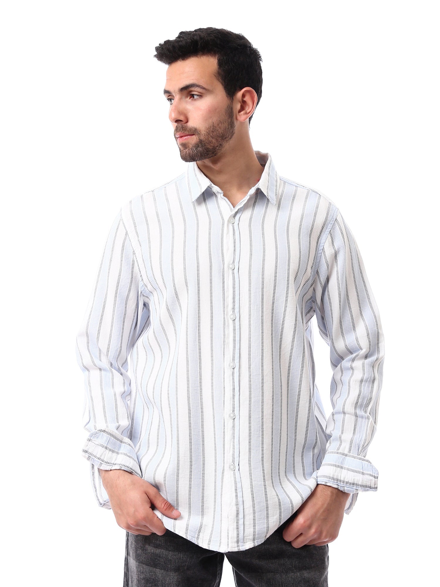 Chemise homme moderne à manches longues, se distinguant par un élégant design à rayures verticales et des finitions soignées. Elle convient à différentes occasions, aussi bien pour le travail que pour les sorties quotidiennes. Dotée d’une coupe confortable et de boutons frontaux, cette chemise allie élégance et confort. Confectionnée dans un tissu doux pour un confort optimal tout au long de la journée, elle se combine facilement avec différents styles de tenues. Idéale pour une allure moderne et élégante en toute occasion.