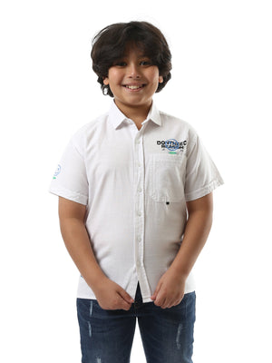 Chemise pour garçon à manches courtes, au design moderne avec des logos distinctifs et une poche avant pour plus de style. Fabriquée dans un tissu doux et confortable, cette chemise est idéale pour les journées quotidiennes et les occasions décontractées. Elle apporte une touche de dynamisme au look des enfants.