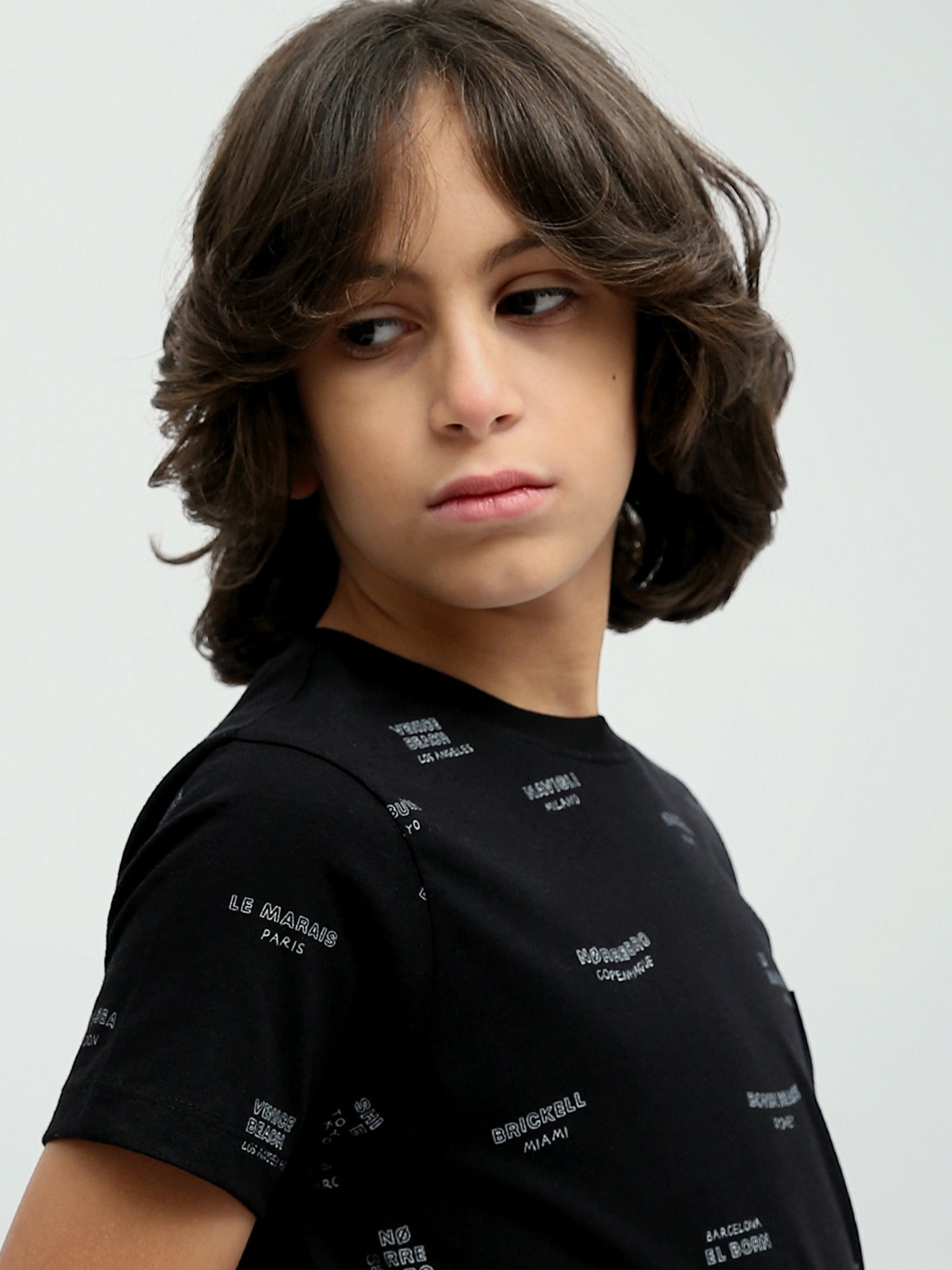 T-shirt pour enfants au design moderne, orné d'un logo répété sur l'ensemble du tissu, ajoutant une touche d'originalité et d'élégance. Fabriqué en tissu coton doux, il assure un confort tout au long de la journée, avec des manches courtes et des finitions élégantes. Parfait pour des looks décontractés et des occasions quotidiennes, il peut être facilement assorti avec un jean ou un pantalon en tissu pour un style à la fois tendance et confortable.