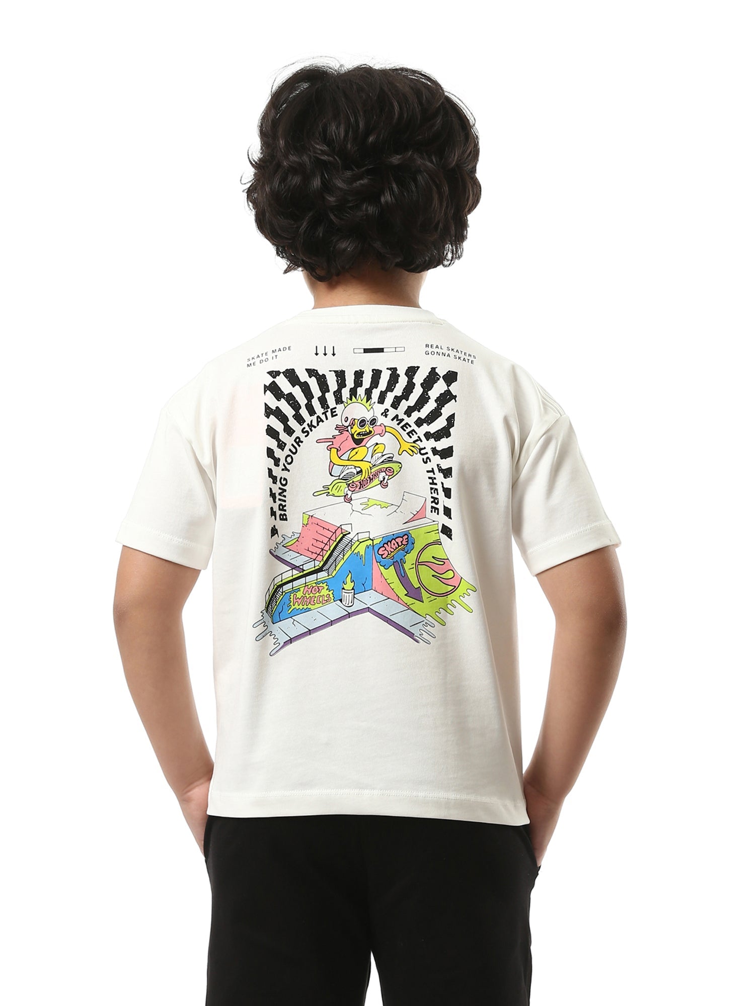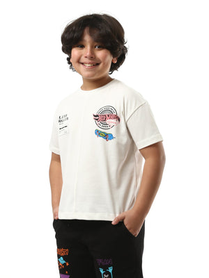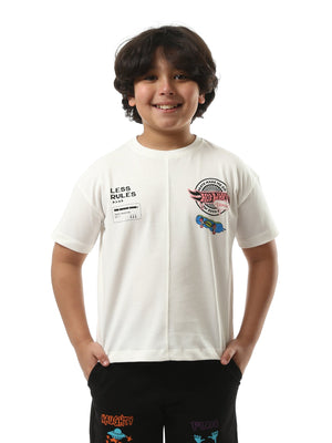 T-shirt pour garçon unique au design moderne avec une impression et un logo sur le devant, ainsi qu'un dessin attrayant d'un personnage au dos. Il se distingue par son confort et sa flexibilité grâce à son tissu en coton doux. Idéal pour les activités quotidiennes ou les sorties en plein air.
