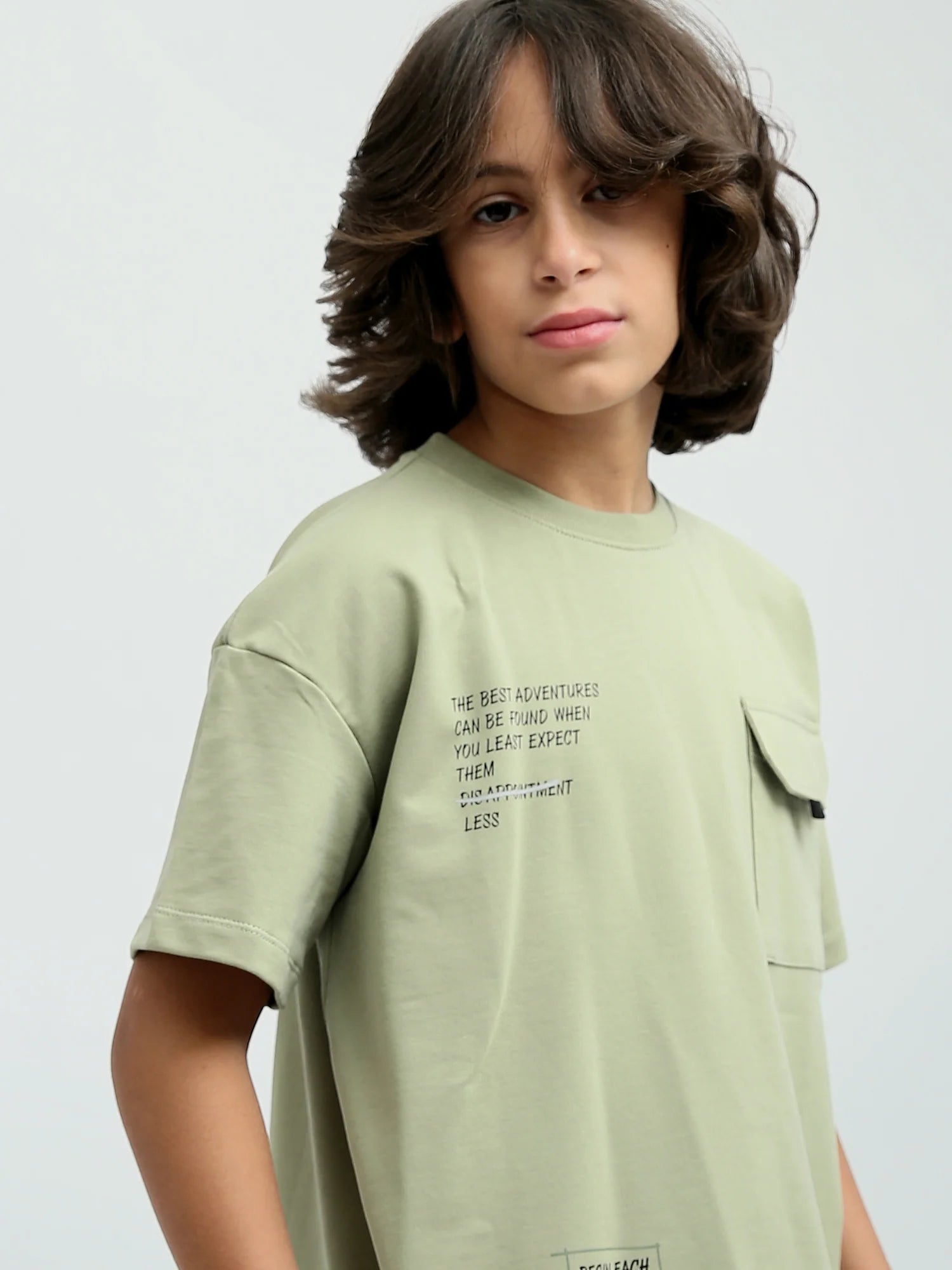 Ajoutez une touche de style moderne au look de votre enfant avec ce t-shirt conçu avec des lignes élégantes et un texte imprimé qui apporte une touche de fun. Il est doté d'une poche pratique sur le côté, parfaite pour les activités quotidiennes. Fabriqué dans un tissu doux et léger, il offre à votre enfant un confort total tout au long de la journée, et constitue le choix idéal pour les activités décontractées et les événements familiaux.