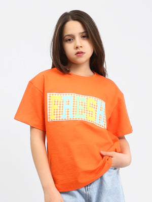 Ajoutez une touche dynamique et tendance à la garde-robe de votre adolescente avec ce t-shirt "FRESH". Disponible en deux couleurs vibrantes : marron et orange, ce modèle arbore un design moderne et audacieux avec l'inscription "FRESH" en lettres stylisées et un motif à carreaux colorés. Parfait pour des looks décontractés et modernes, ce t-shirt est conçu pour offrir à la fois confort et style.