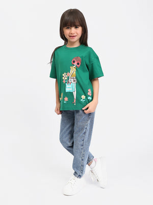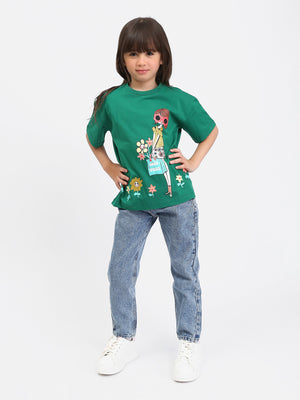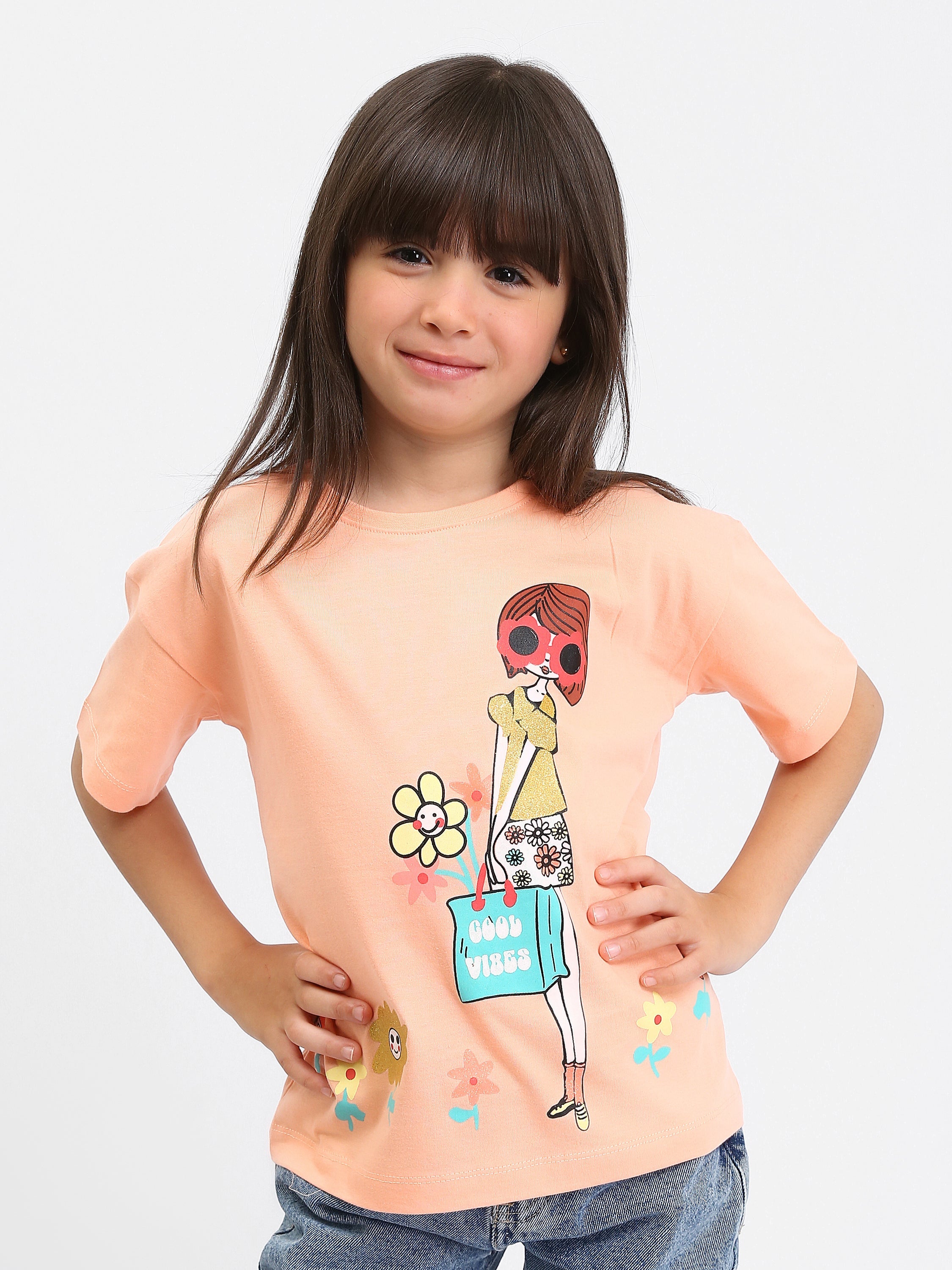 Apportez une touche de fraîcheur et de style à la garde-robe de votre enfant avec ce t-shirt "Good Vibes", disponible en vert et rose. Orné d'un design coloré et dynamique, ce t-shirt met en scène un personnage féminin stylisé avec des lunettes de soleil rouges, portant un sac à fleurs et entouré de fleurs aux couleurs vives. Le message "GOOD VIBES" ajoute une touche positive et joyeuse, parfaite pour les journées ensoleillées.