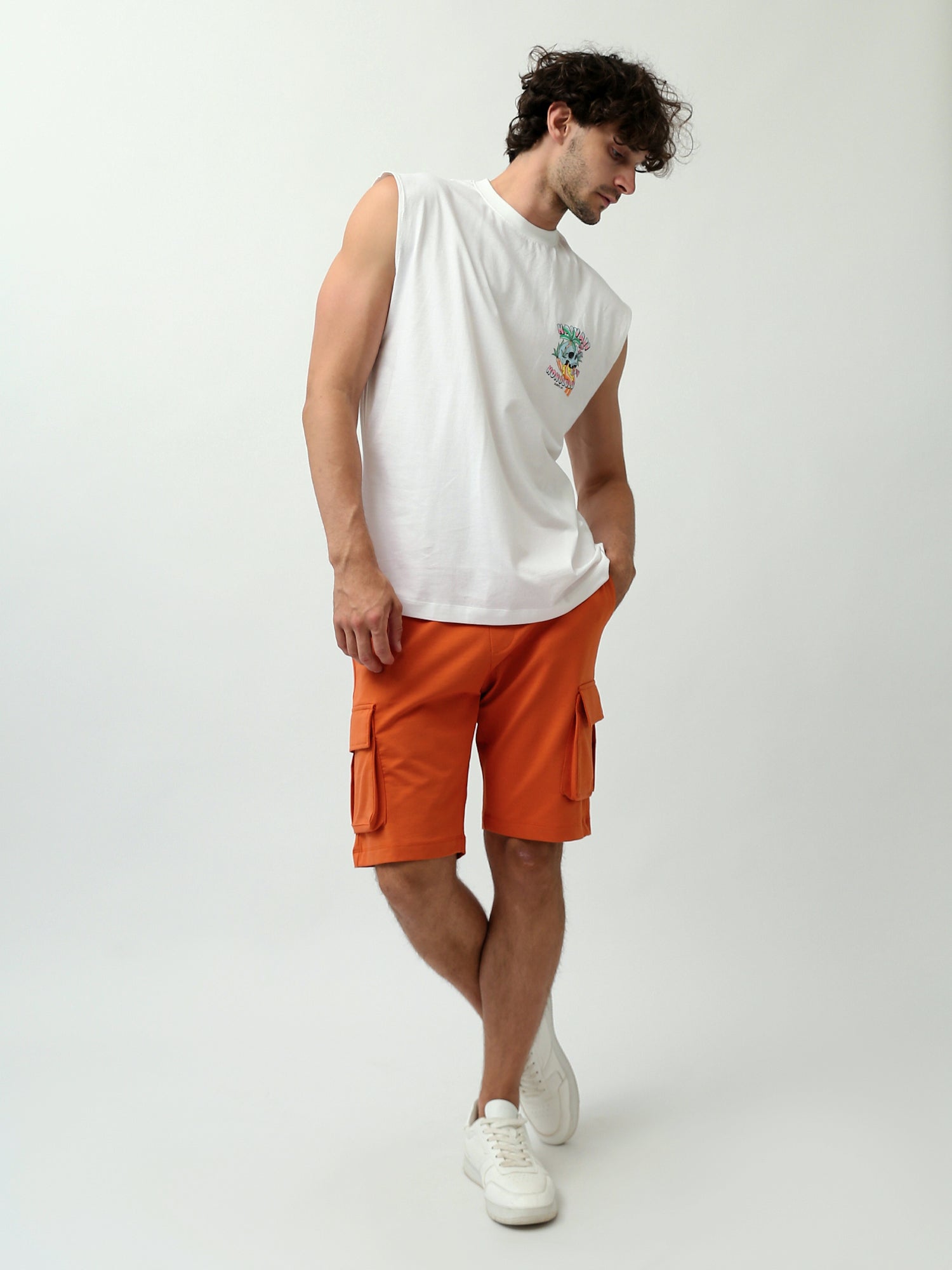 Short cargo pour homme au design moderne, avec poches latérales larges dotées de rabats et taille élastique pour un confort optimal. Fabriqué dans un tissu confortable et de haute qualité, ce short est parfait pour les activités sportives et les looks décontractés. Il présente des détails pratiques et élégants, et peut être facilement assorti avec un t-shirt ou un sweat-shirt pour un look confortable et moderne.