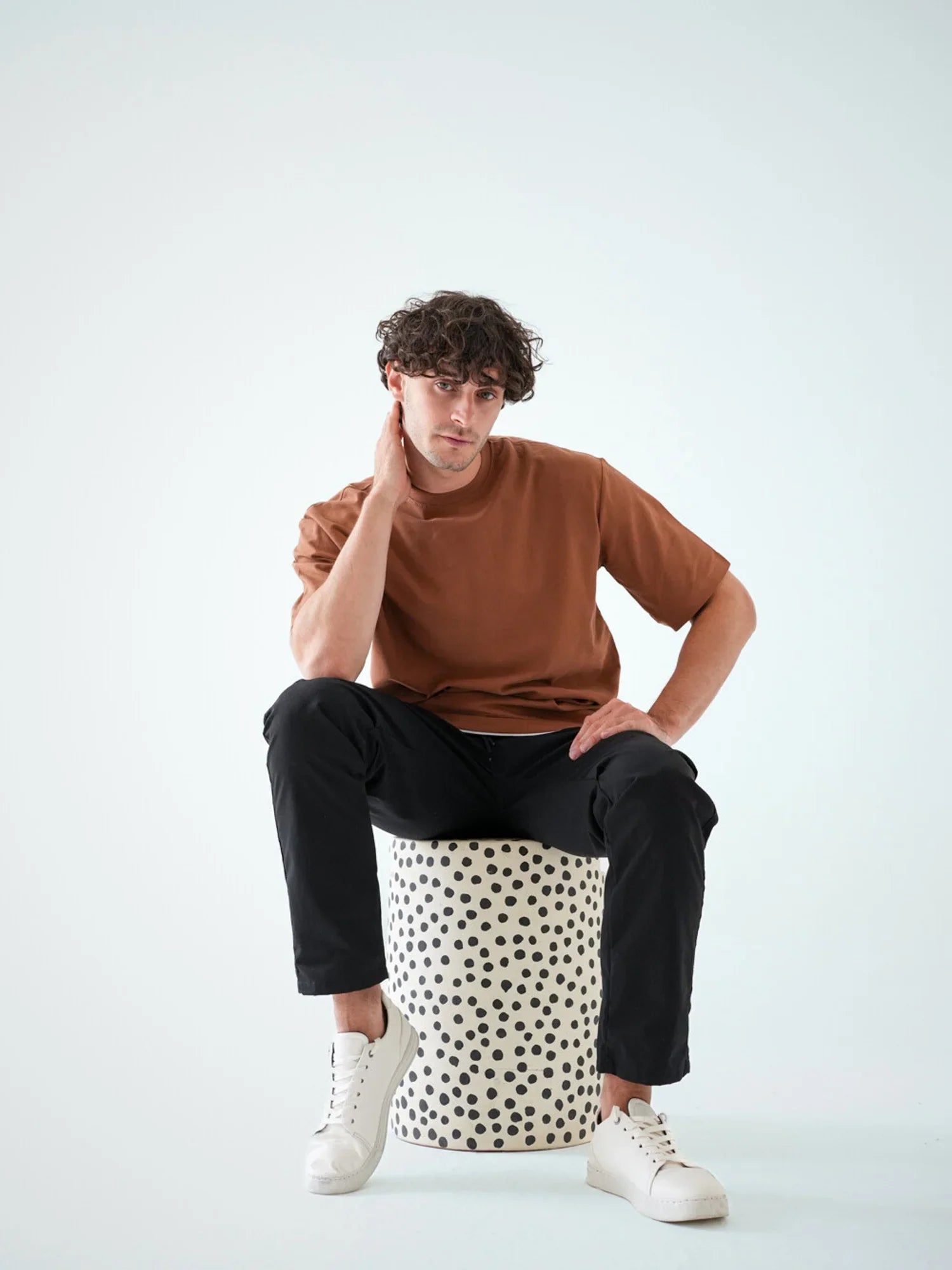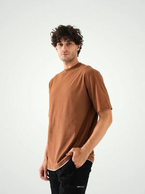 T-shirt pour homme moderne de couleur marron chaud, idéal pour vos looks quotidiens. Il présente un design simple et élégant, avec des détails doux assurant un confort tout au long de la journée. Le tissu est très flexible et léger, ce qui en fait un choix parfait pour l'été. Avec sa coupe ample qui convient à toutes les morphologies, ce t-shirt est le choix parfait si vous recherchez un look décontracté et élégant à la fois. Facile à associer avec des jeans ou des pantalons de sport.