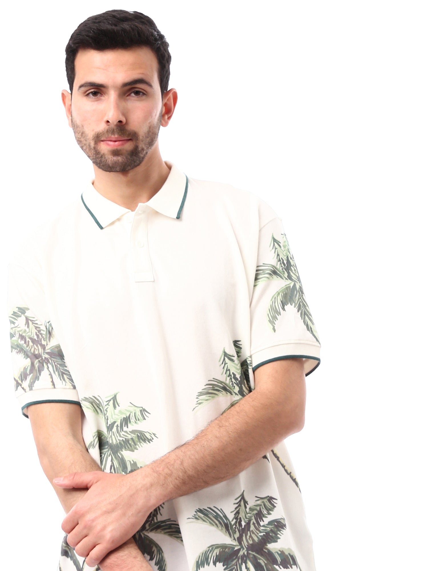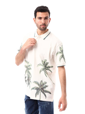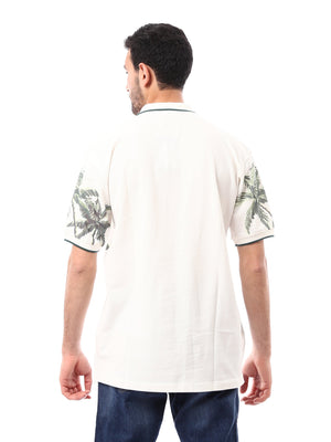 Polo pour homme au design moderne et élégant, avec une légère impression de palmier sur les manches et le bas, ajoutant une touche de fraîcheur et de confort à votre look.