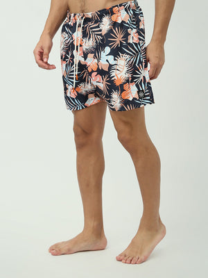 Short de bain pour homme au design tropical moderne, idéal pour l’été et les journées à la plage. Il se décline dans un coloris bleu marine avec un imprimé de feuilles tropicales attrayant, et dispose d’une taille élastique avec cordon de serrage ajustable pour un maintien confortable pendant la nage et les mouvements.