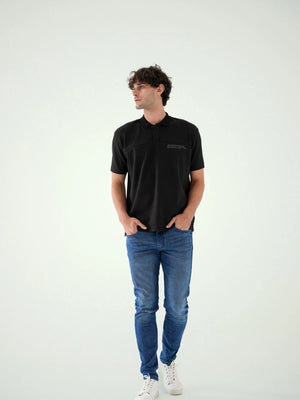 Ce polo pour homme de couleur noire se distingue par son imprimé logo distinctif, apportant une touche de style moderne et élégant à votre tenue. Fabriqué dans un tissu confortable et respirant, il est parfait pour un look décontracté mais soigné.