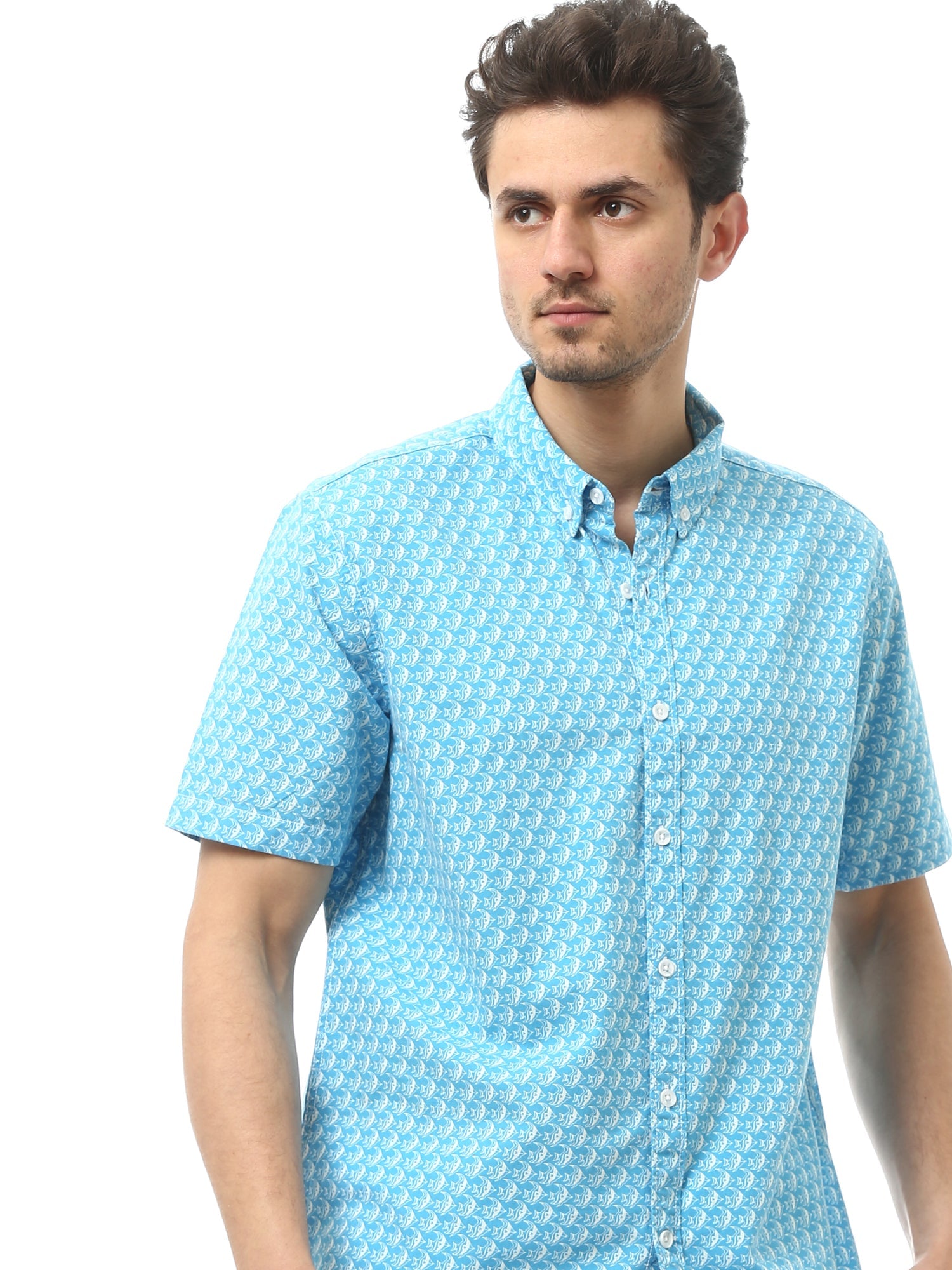 Chemise pour homme avec boutons, fabriquée dans un tissu léger et confortable, avec un design moderne aux couleurs aquarelles douces. Elle présente des manches courtes et un col élégant, ce qui en fait le choix idéal pour les journées chaudes d'été ou les looks décontractés. Ce t-shirt reflète un style à la fois confortable et élégant grâce à son design contemporain, convenant à différents goûts.