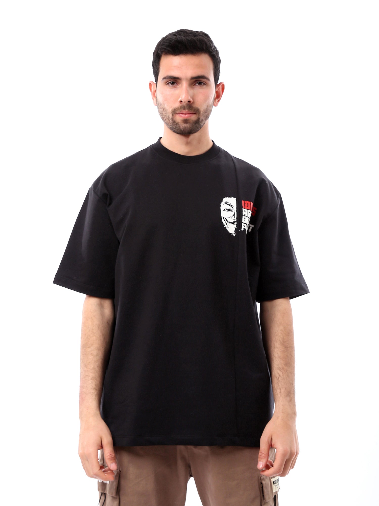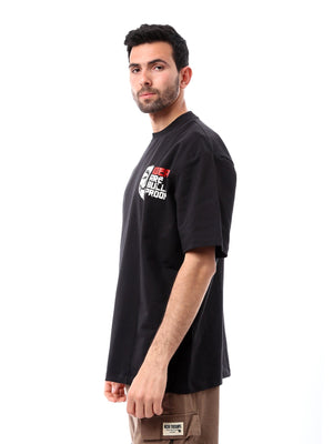 T-shirt pour homme au design moderne en noir, orné d'un logo sur le devant. Il se distingue par des manches courtes et une coupe confortable, ce qui en fait un choix idéal pour les looks quotidiens décontractés. Ce t-shirt constitue un ajout parfait à votre garde-robe grâce à son design distinctif qui reflète un style jeune et moderne, le rendant adapté à différentes occasions.